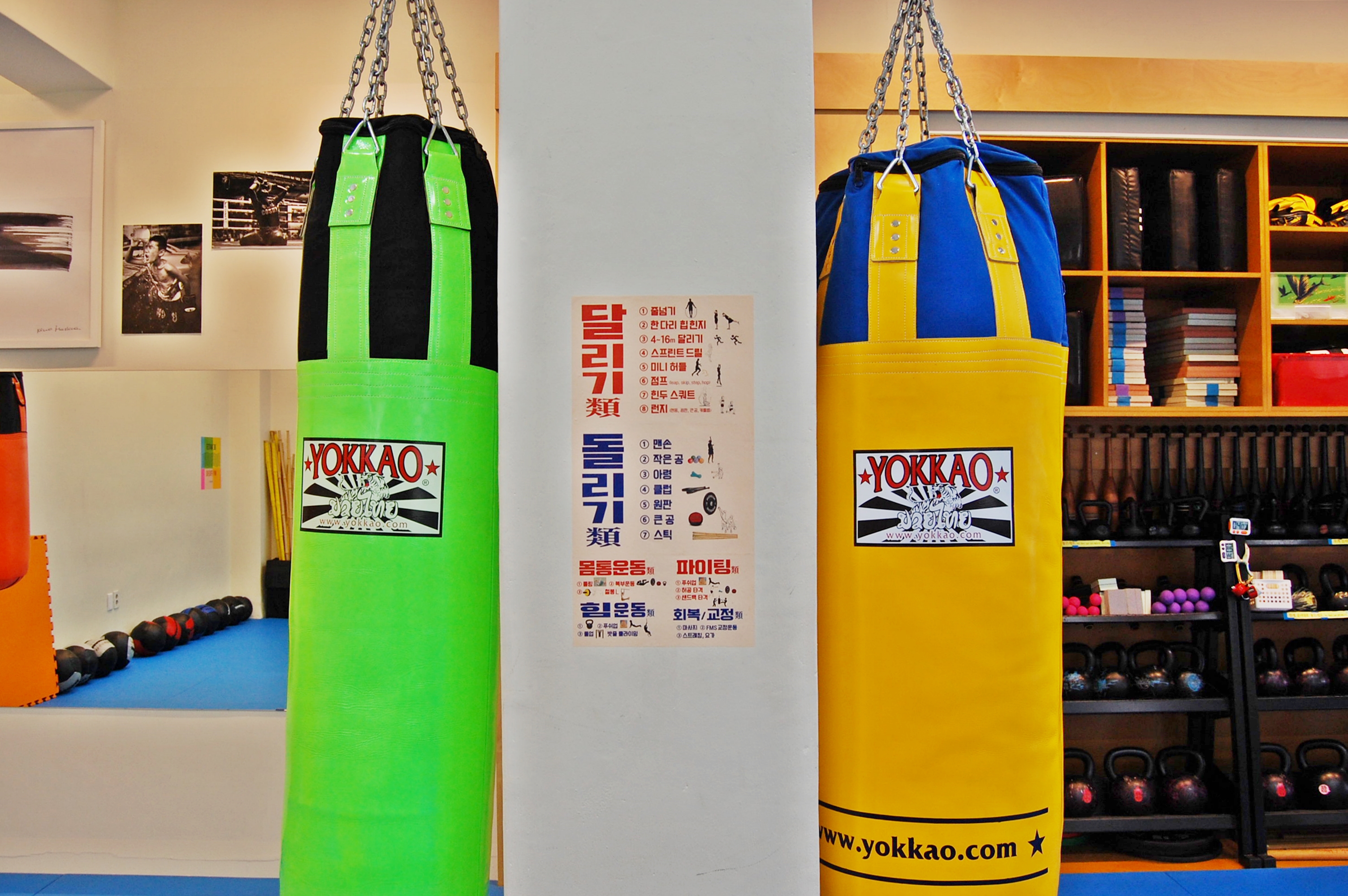 ● 체육관 설치에 적합합니다. 저희는 체육관 천장에 길이 3.6미터, 5미터인 2개의 H빔을 먼저 부착했고 여기에 4개의 헤비백 롤러를 걸어서 총 4개의 헤비백을 매달아 사용했습니다. 그러면 헤비백을 그때그때 롤러를 굴려서 움직일 수 있고 롤러의 손잡이를 돌려서 고정시킬 수 있습니다. 따라서 체육관 공간을 용도에 맞게 효과적으로 이용할 수 있습니다. 요가, 케틀벨, 레슬링 수업 때는 헤비백을 기둥 옆으로 밀어놓고 타격훈련 시에도 쉐도우 할 때는 헤비백을 옆으로 밀어내 거울을 보면서 하고 헤비백을 칠 때만 중앙으로 이동시켜 고정해서 사용했습니다. 미국산 제품이고 튼튼합니다.