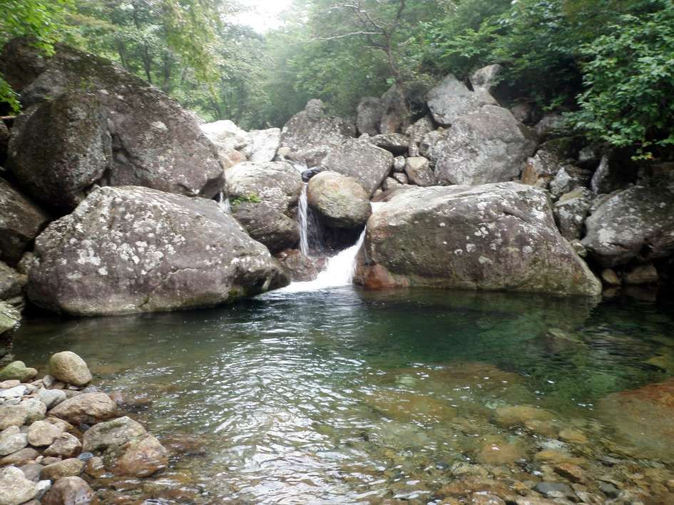 아내에게 안부전화를 하고는 계곡을 따라 오른다..