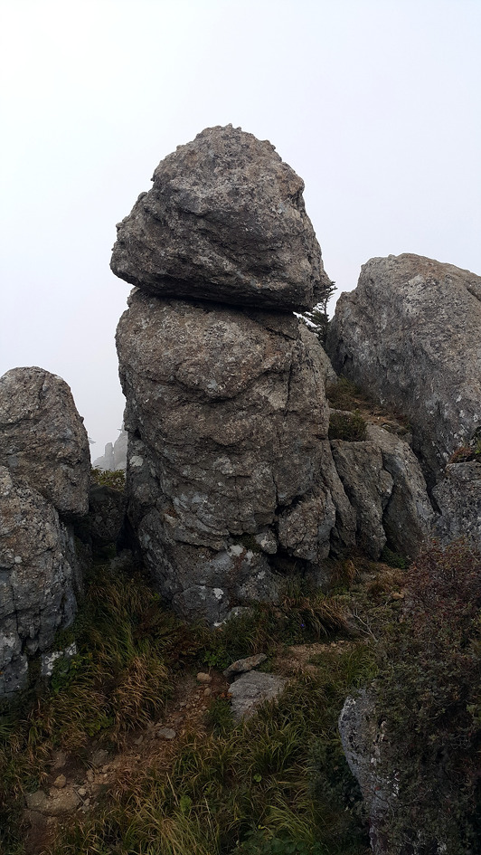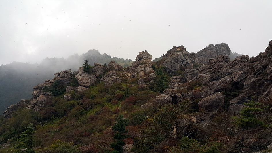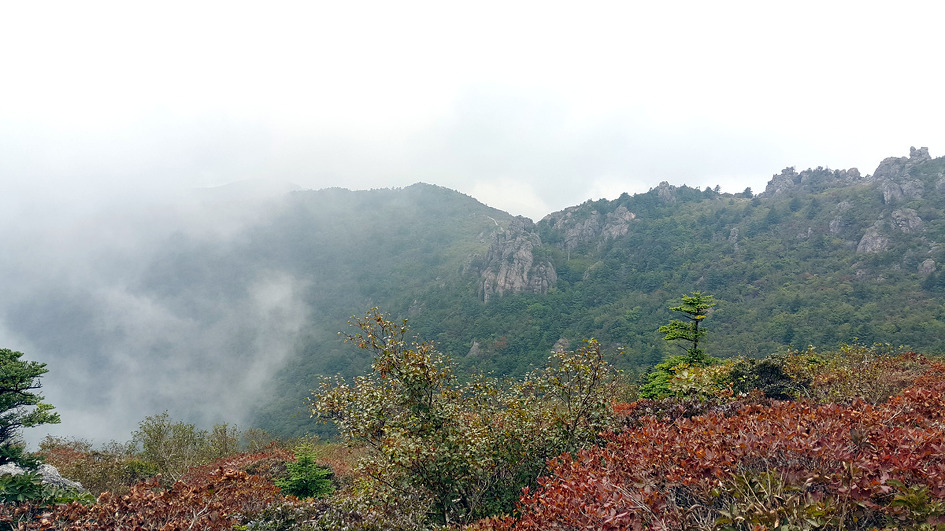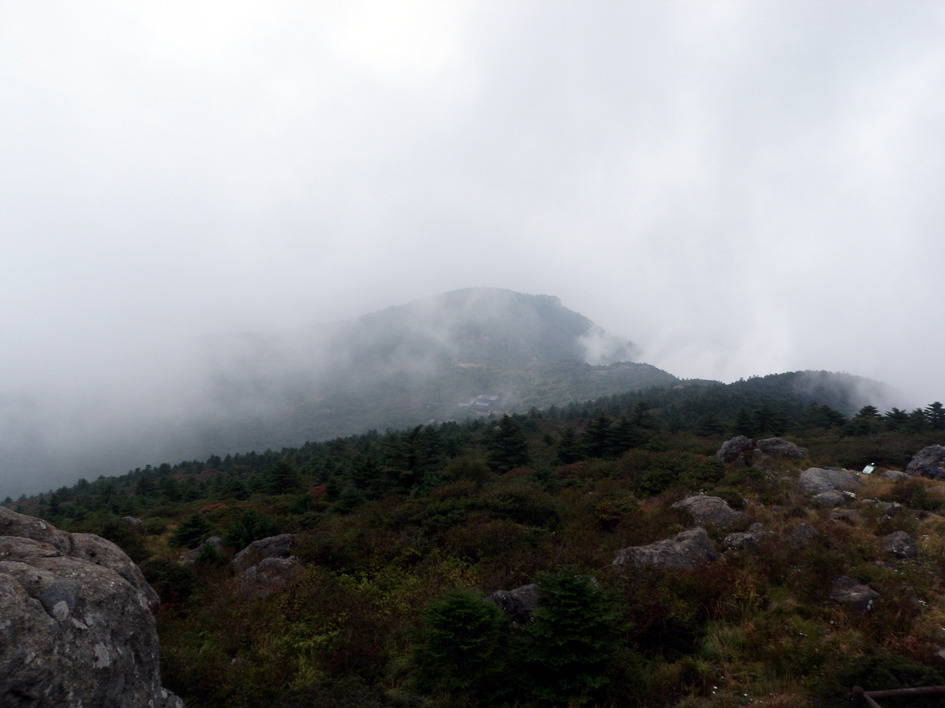운무가 그치기를 기다려 보지만 잠시후에 구름속에 잠겨버리고 만다..
