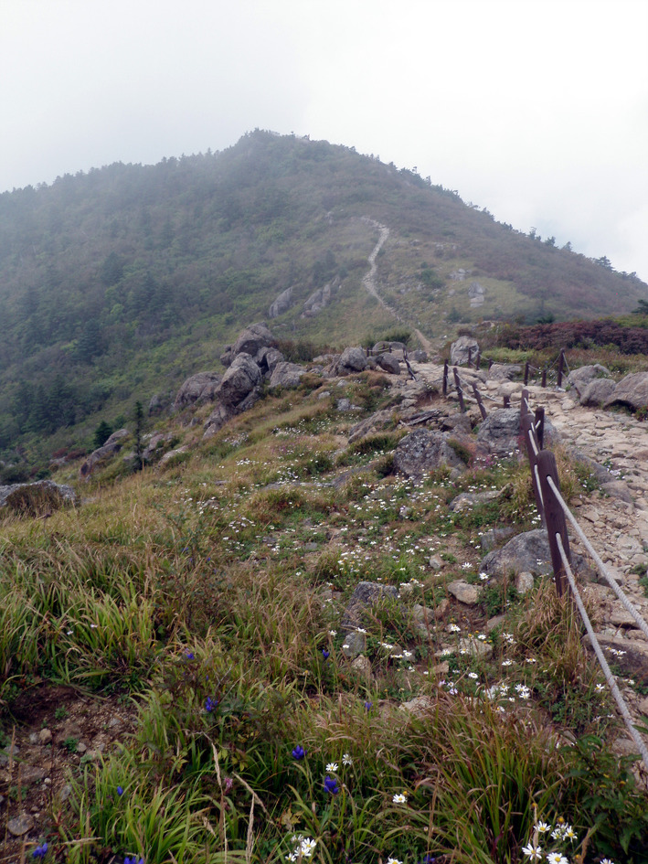 감각적으로 그리고 희미한 리본을 따라 너들길을 한참을 올라간다..