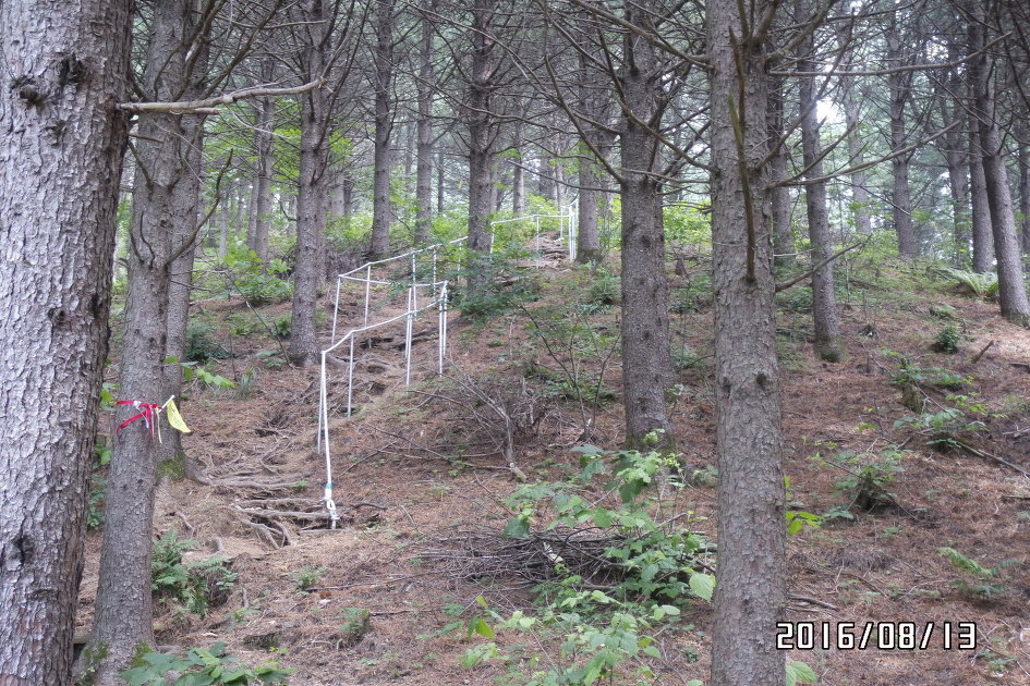 말아서 정리를 해놓아 희미하게 등산로가 보였다.