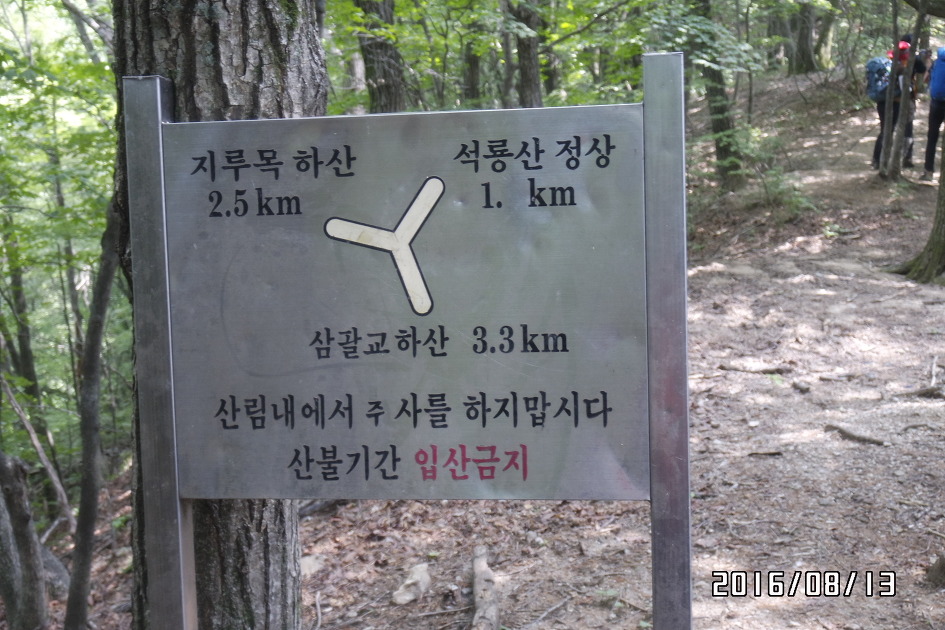 석룡산에서 능선길을 따라 15분 정도 가니 등산로 없음이란 이정표가 있다.