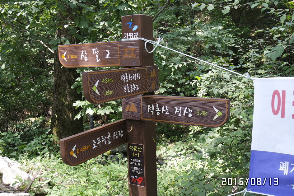 이정표에 삼팔교에서 석룡산 정상까지 4.6km라 하는데,