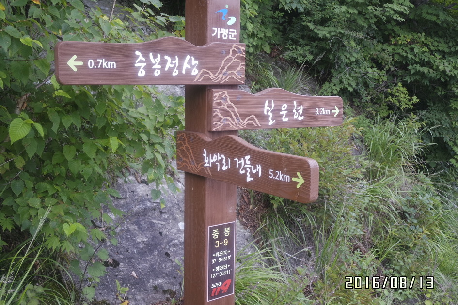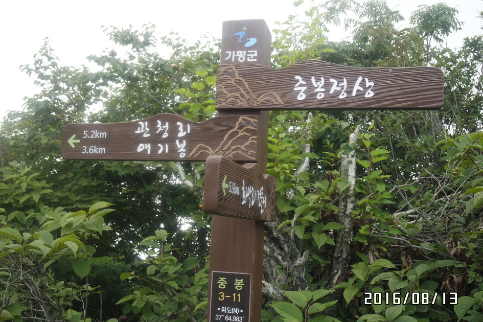 산딸기를 먹으며 조금 오르니 화악북봉이다.