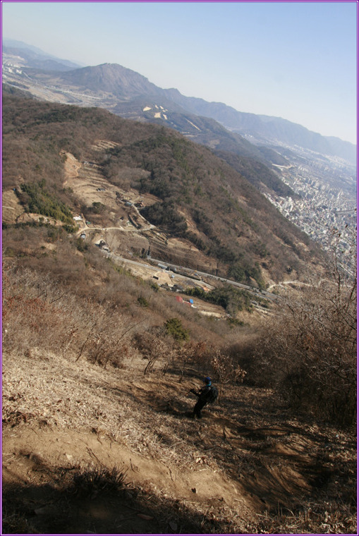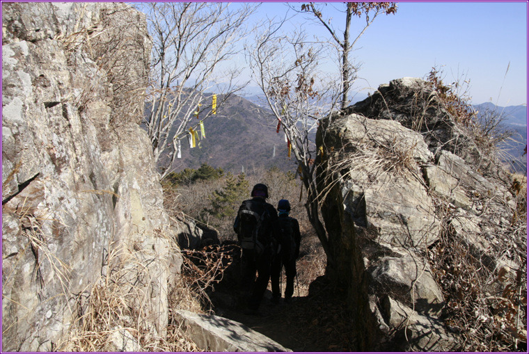 천주봉에서 가파른 내리막길을 내려간다