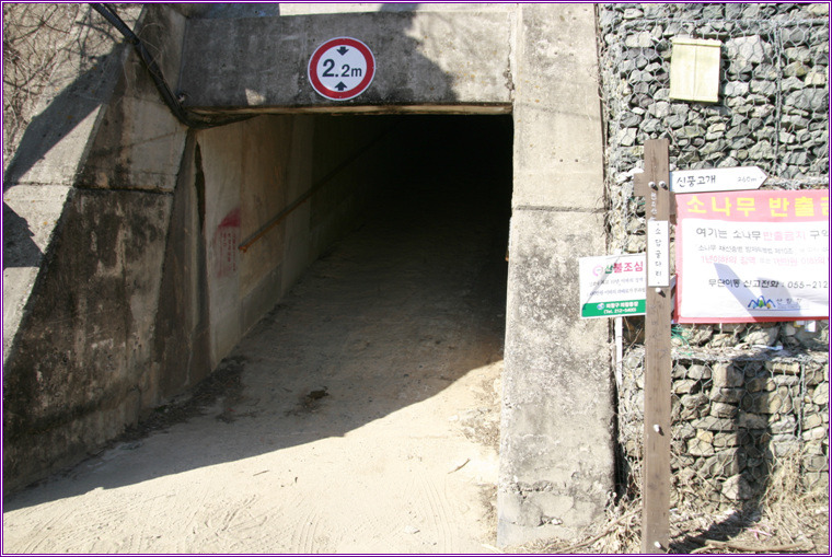 남해 고속국도 지하통로를 지난다