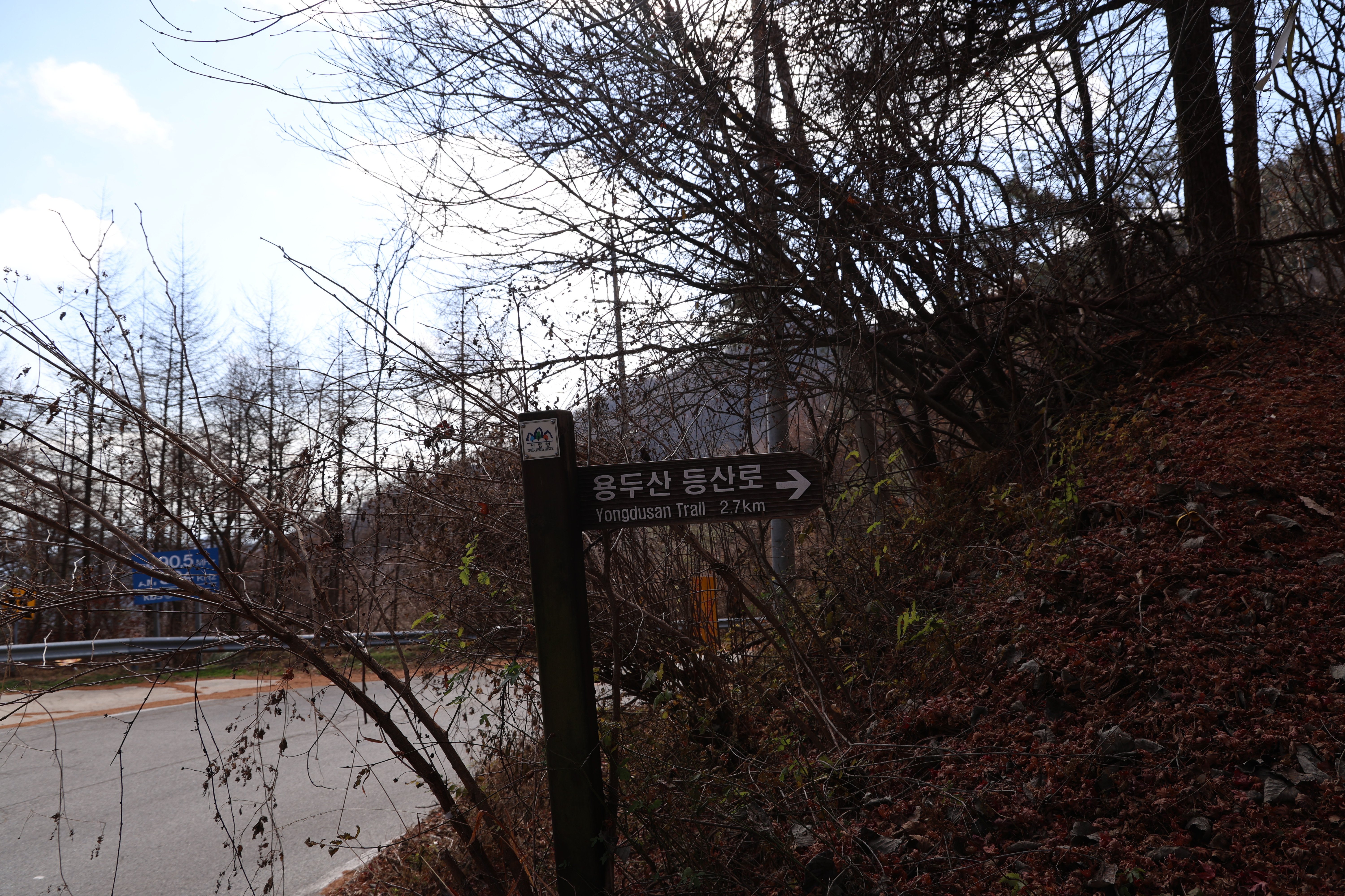 잘루목에서 24분쯤 뒤 「용두산 등산로」 갈림길에 닿았다.(11:14)