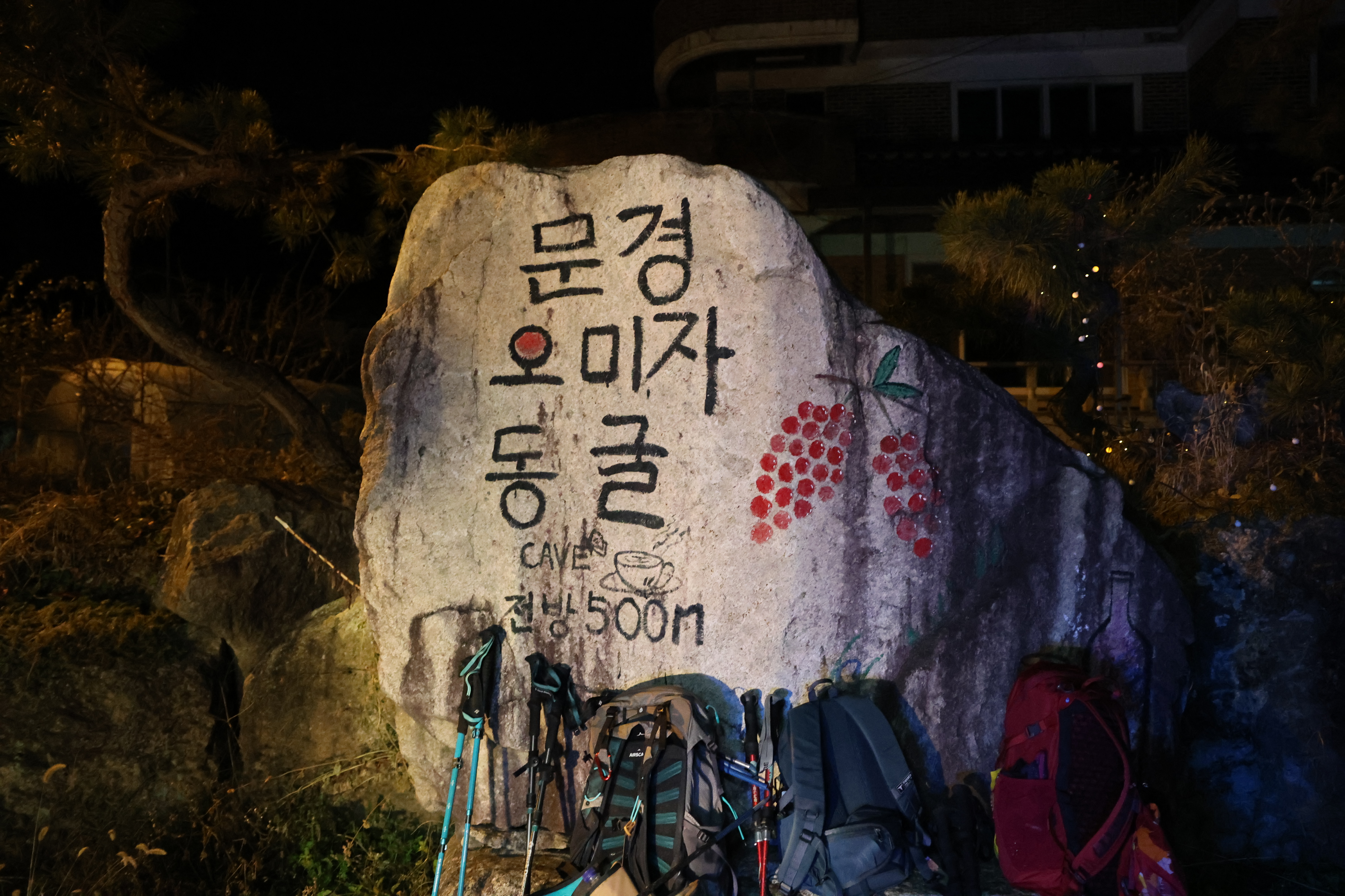 길 나설 채비한 다음 안생달 상생달 마을을 나서(03:15) 4분쯤 뒤 「문경 오미자 동굴 카페」에 닿았다.(03:19)