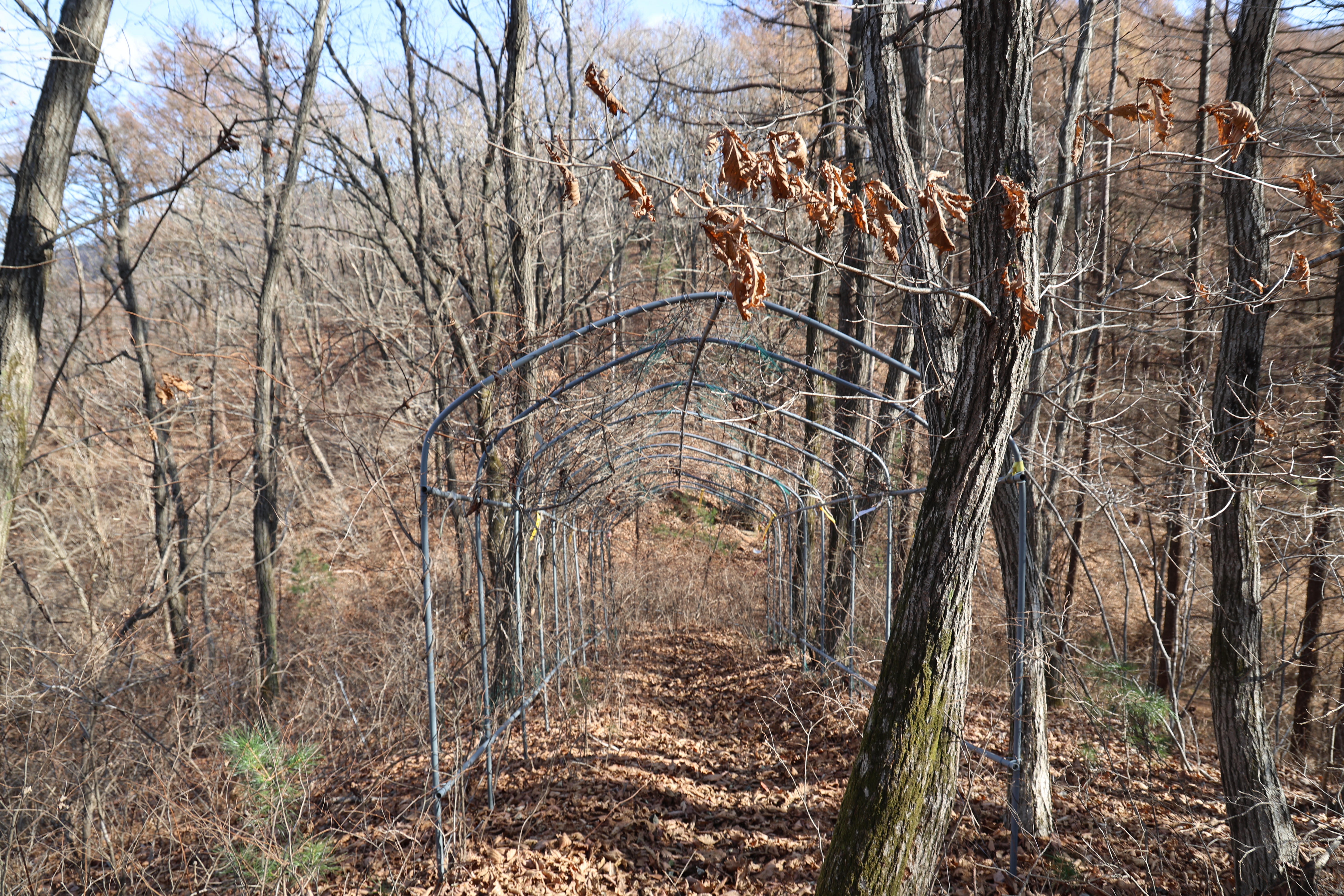 어느새 늦가을. 중부지방에 넓은잎나무[활엽수]는 잎을 다 떨구어 땅 위에 수북이 쌓여 있었다.