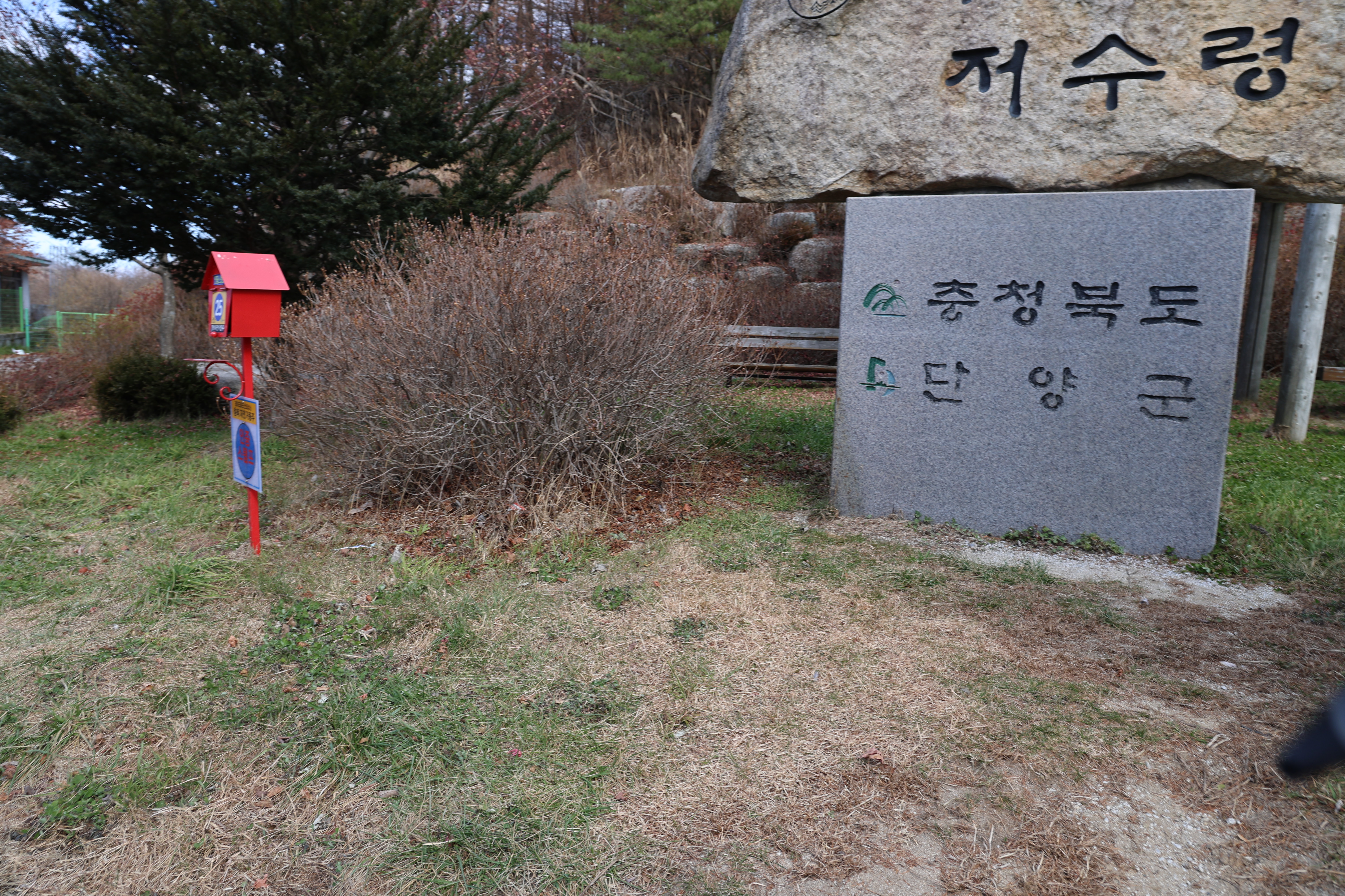 ○ 11:20 저수재(低首嶺, 850m), 산행 끝냄.