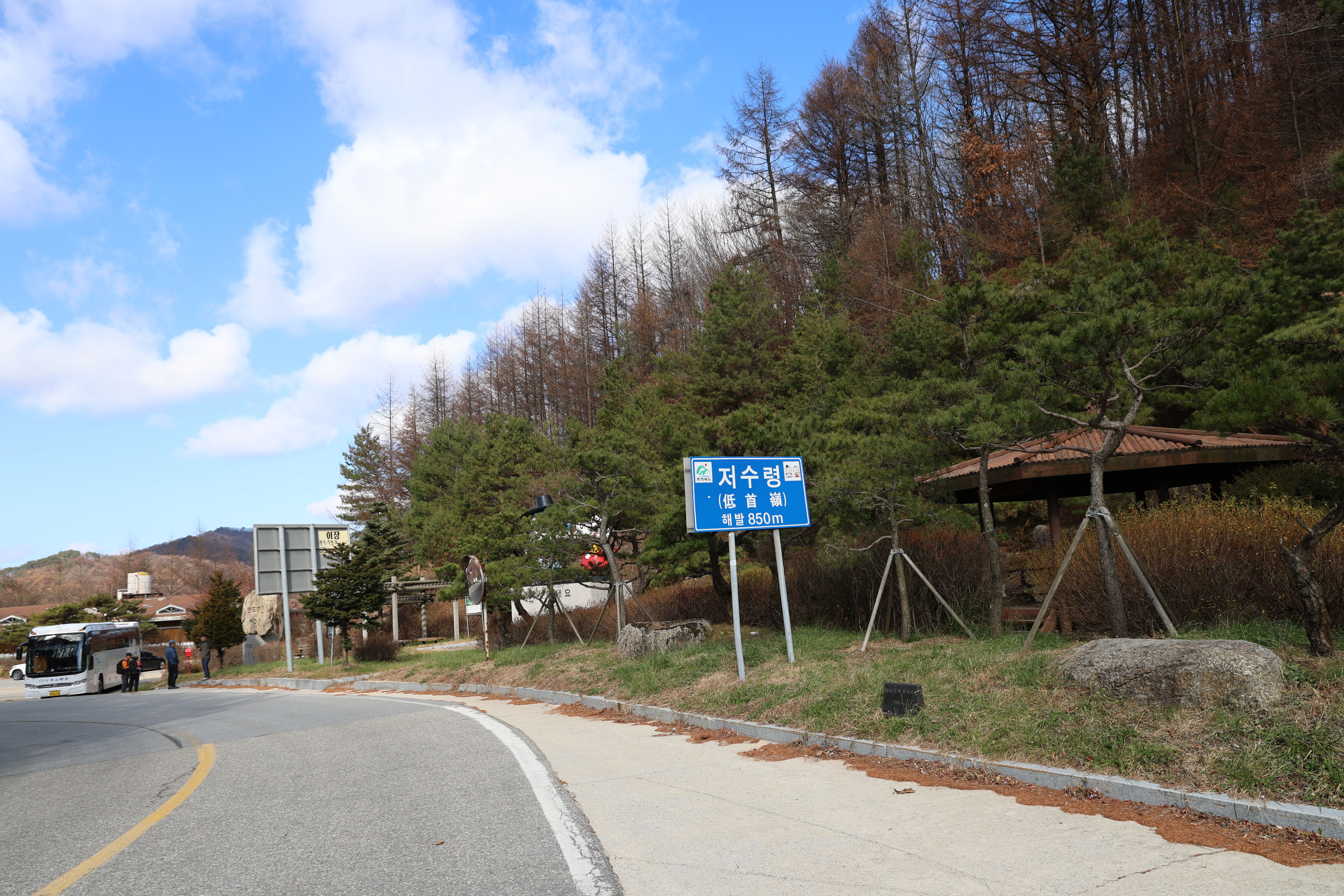 이 갈림길에서 6분쯤 뒤 저수재[저수령, 低首嶺, 해발 850m]에 닿아 산행을 마쳤다.(11:20)