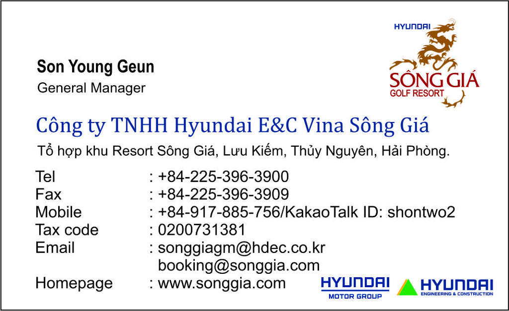 안녕하세요.하이퐁 송지아 골프 리조트 손영근 총지배인입니다.
