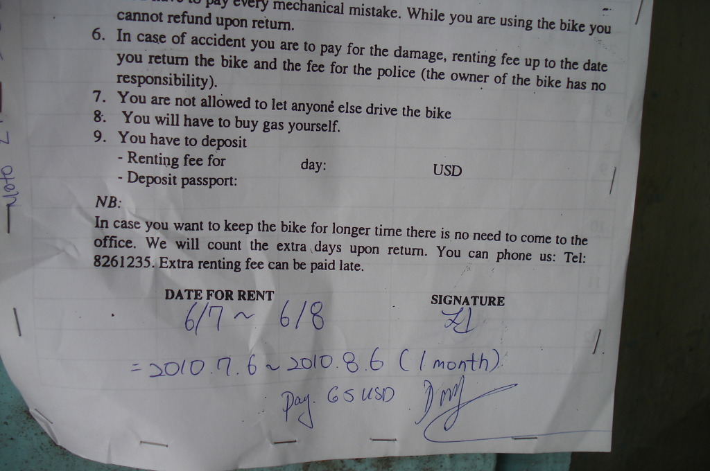 보름정도 남았었지만, 오토바이 수리비 5달러, 호텔에서 일일 렌트비용.. 뭐 따져보니 그리 아깝지도 않았습니다 ^^;