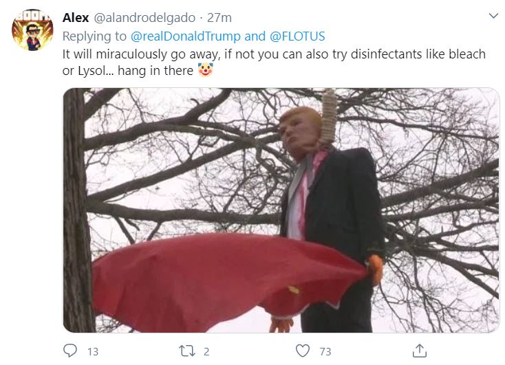 트럼프의 죽음을 바라는 다른 많은 트윗 중 하나.