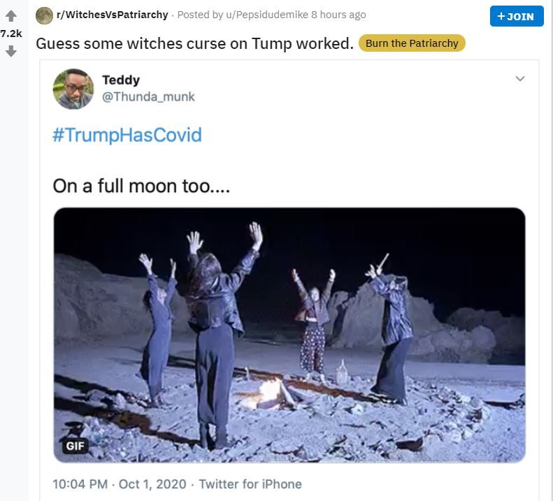 트위터만큼 분열적이고 독성에 절은 레딧 Reddit도 완전한 축하 모드에 있습니다. 이것은 subreddit r / WitchesVSPatriarchy의 최상위 게시물입니다.