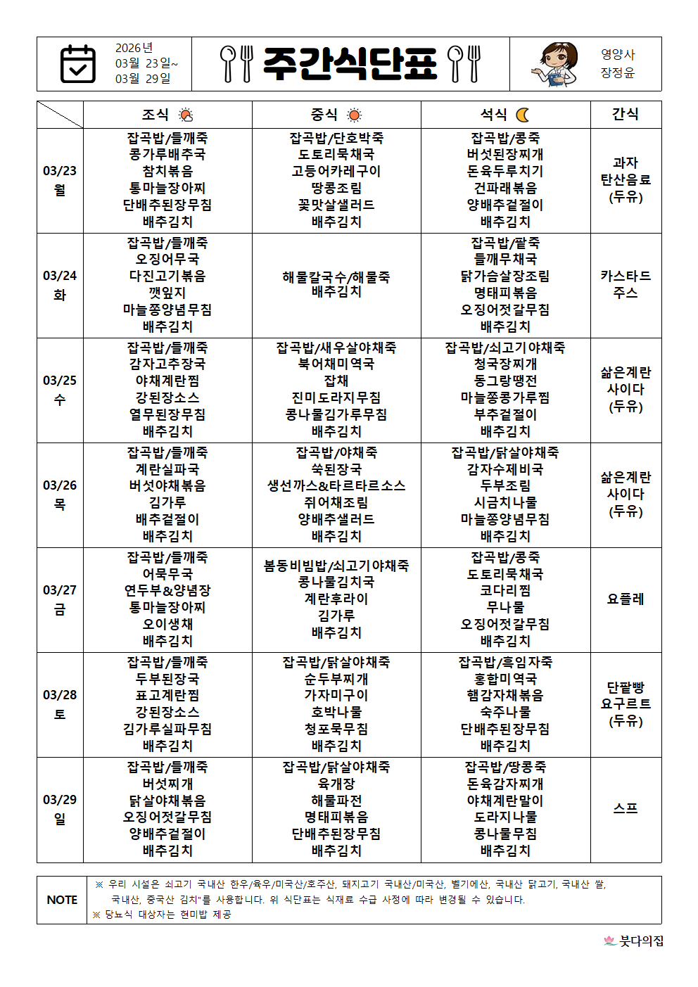 [붓다의집] 2026년 3월 넷째주 식단표 작성자감천복지재단|작성시간26.03.23|조회수27 목록 댓글 0 글자크기 작게가 글자크기 크게가 다음검색 현재 게시글 추가 기능 열기 북마크 공유하기 신고 센터로 신고 댓글 댓글 0 댓글쓰기 답글쓰기 댓글 리스트