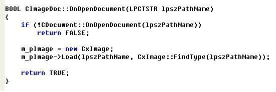 이 함수에서는 이미지를 저장할 포인터인 m_pImage에 CxImage라이브러리에 있는 함수인 Load를 이용하여 불러온 파일을 저장한다