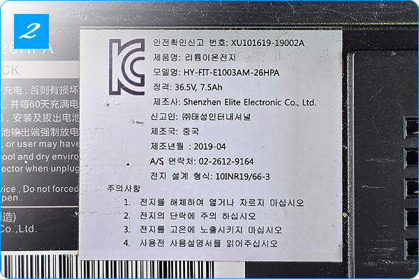 정격 용량은 36.5V, 7.5Ah로 신고되었구요