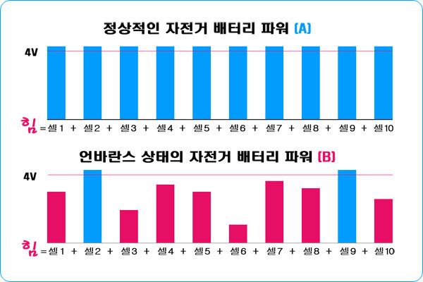 언바란스 상태인 셀들이 버티고 있는 배터리는