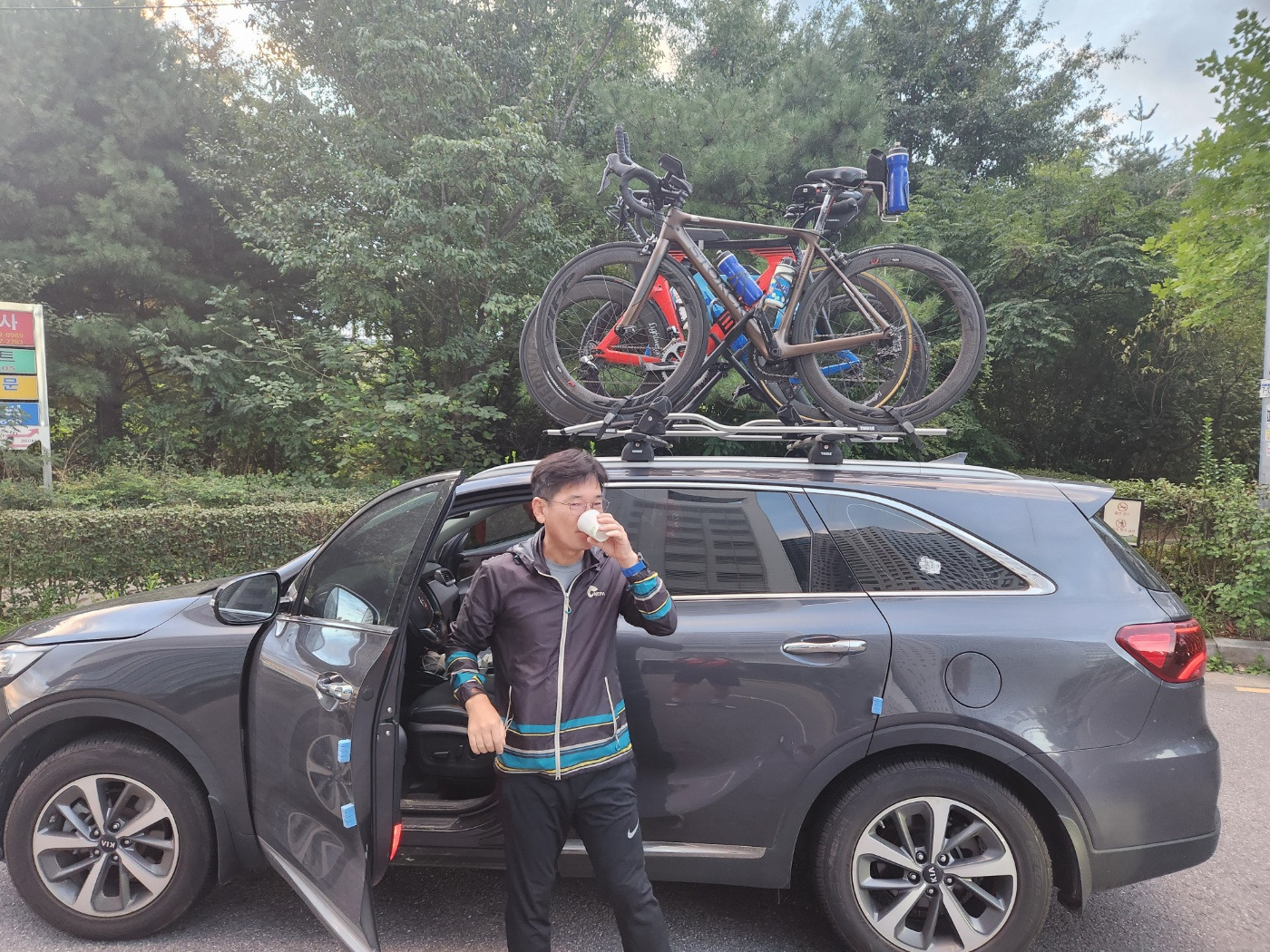거제 철인 박경용 선배님은 아예 하차해서 기념사진을 찍으시네요. ^^;