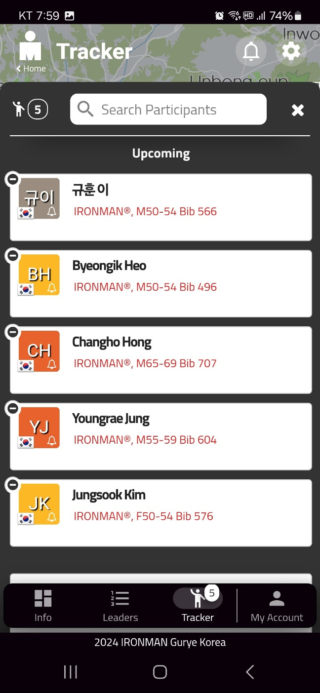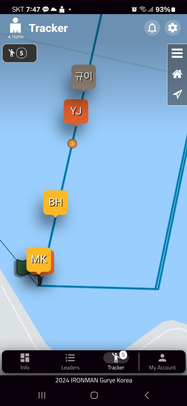 서울의 응원팀은 Ironman Tracker App을 설치하여 응원을 준비합니다.