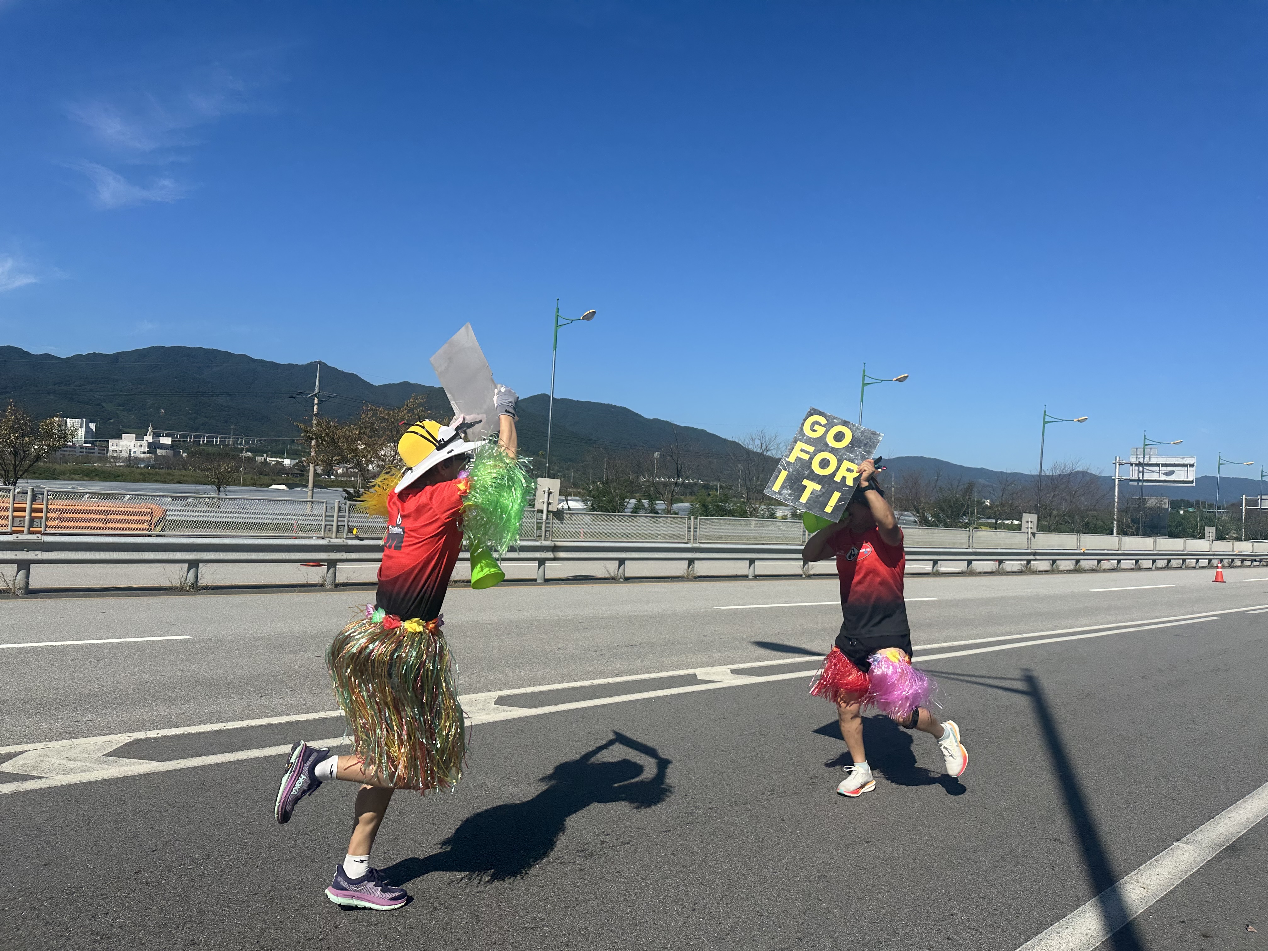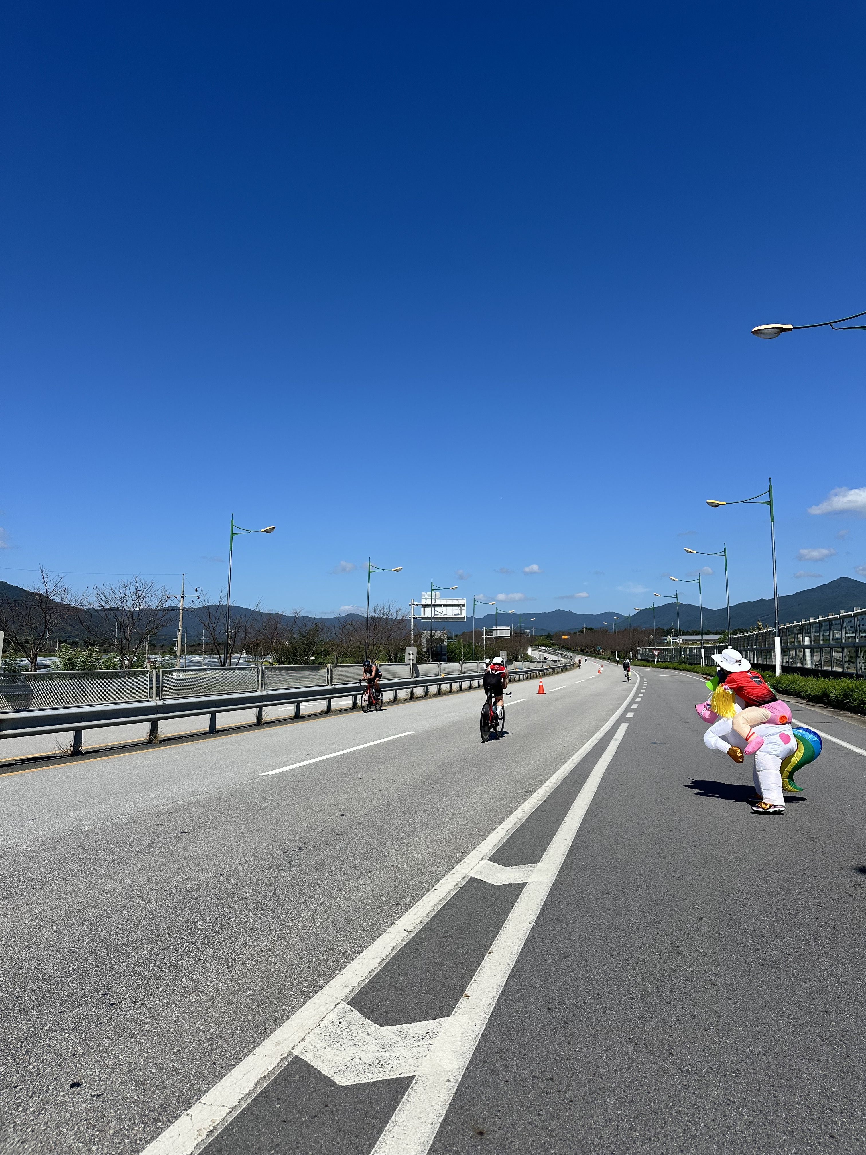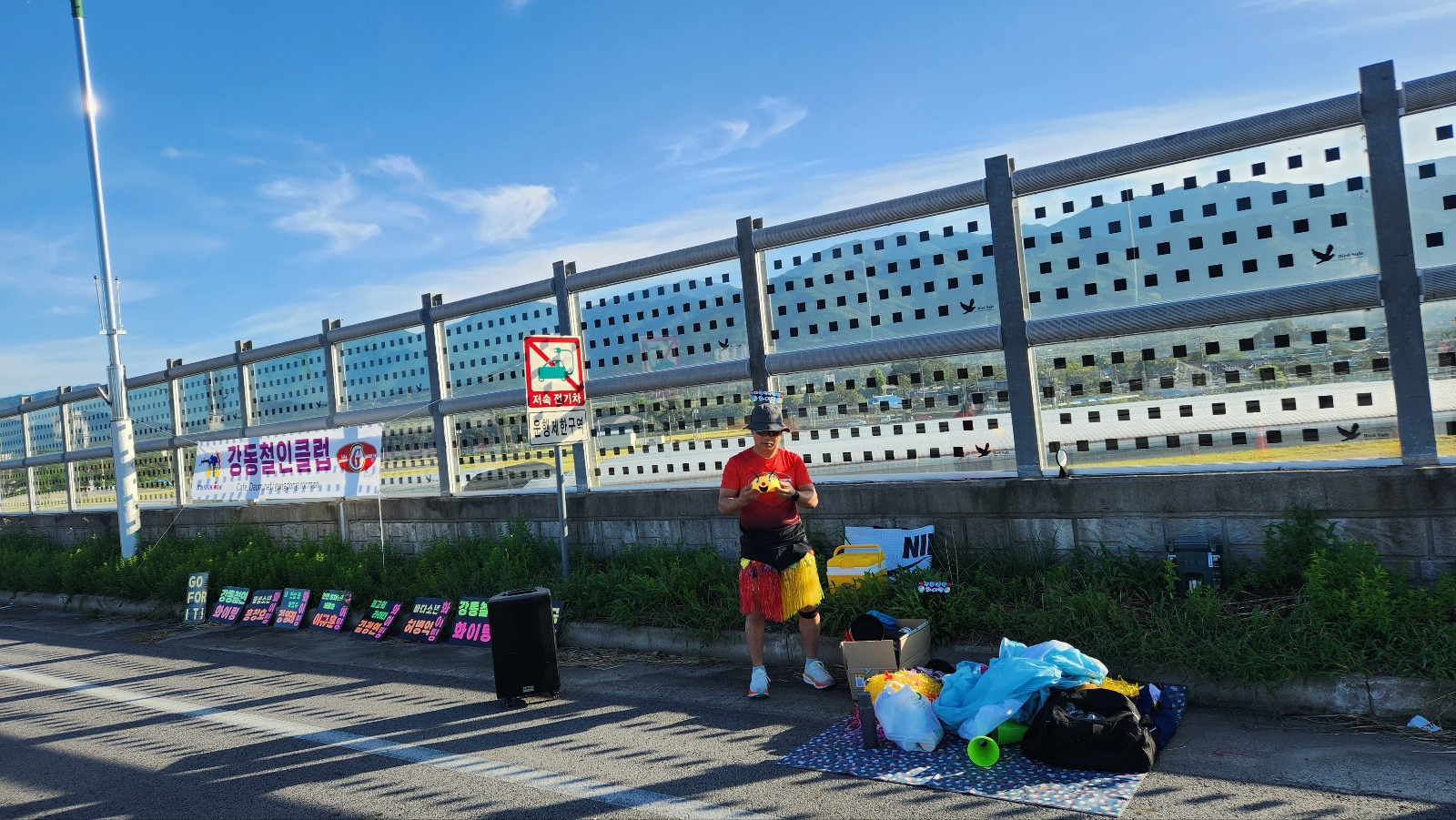 이미 자전거 주로 상의 응원단은 준비 끝.