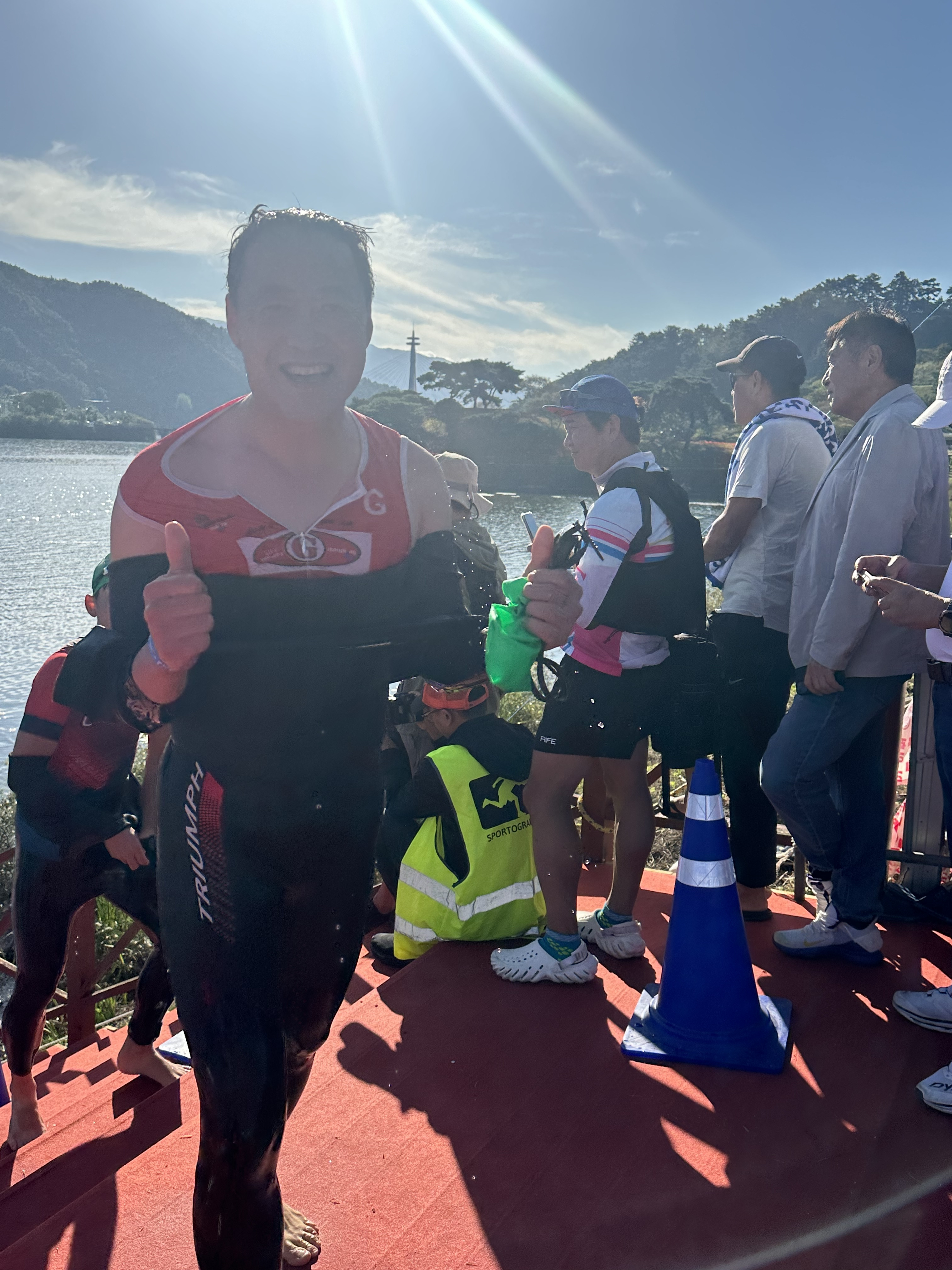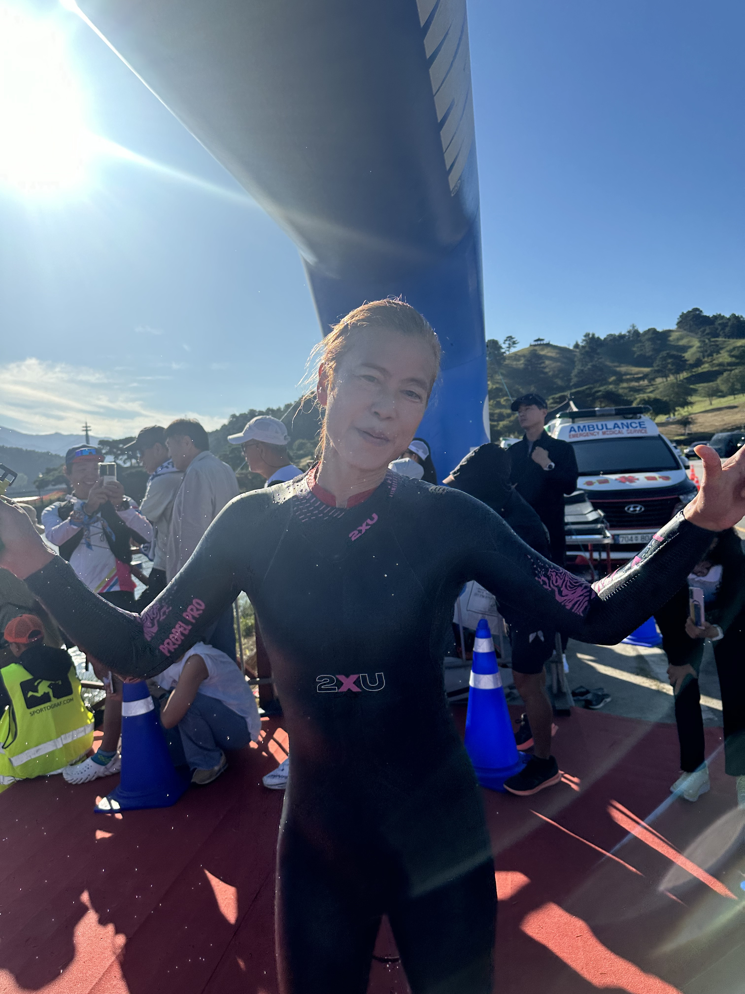 마지막으로 김정숙철인이 여유(1:32:56-에이지 6위)롭게 출수합니다.