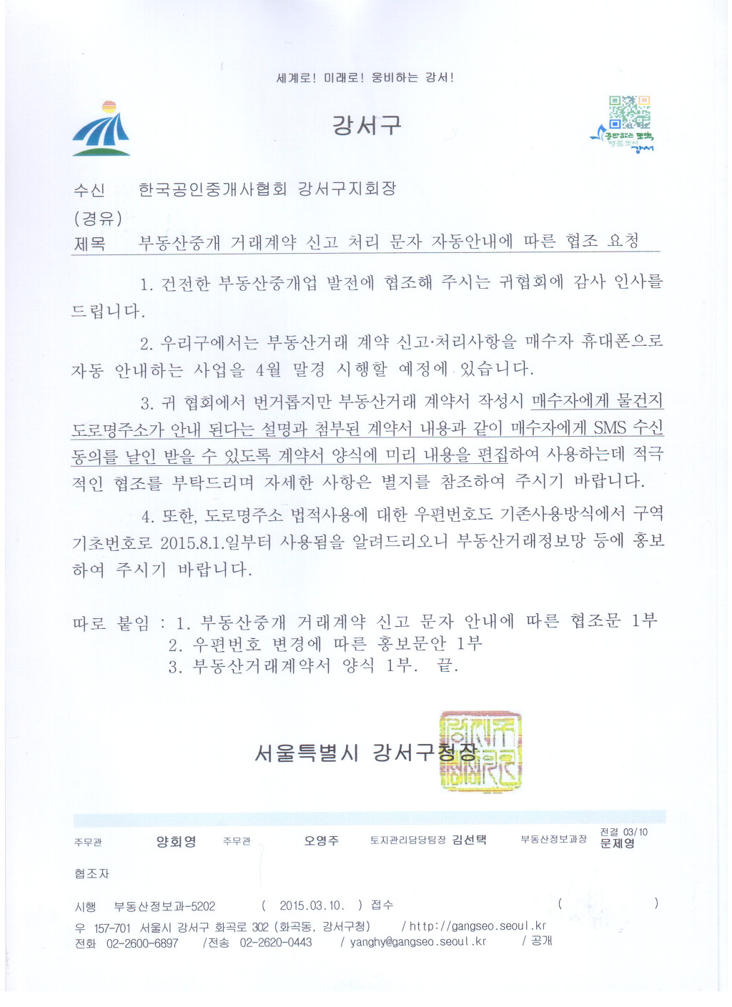 아래와 같이 강서구청 부동산정보과의 협조 요청에 의하여