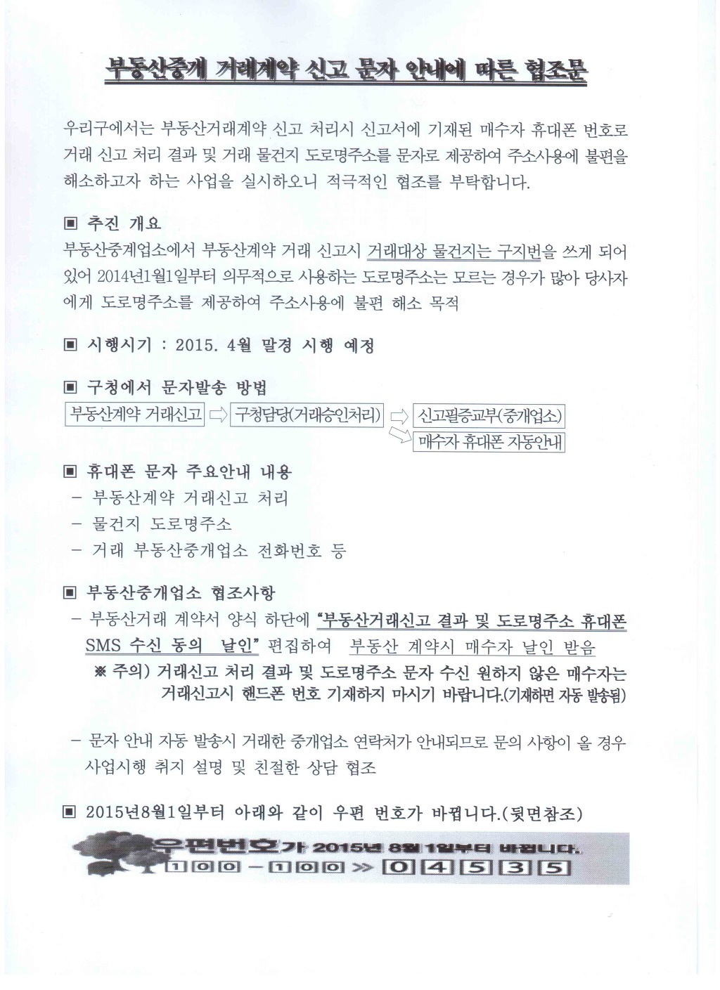 [1]“부동산중개 거래계약 신고 처리 문자 자동안내에 따른 협조 요청”