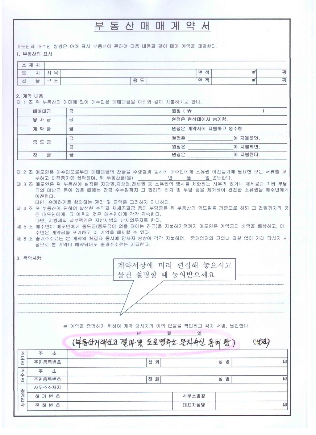 계약서 양식이 변경 되기전 매매 계약서는 번거로우시더라도 특약사항에