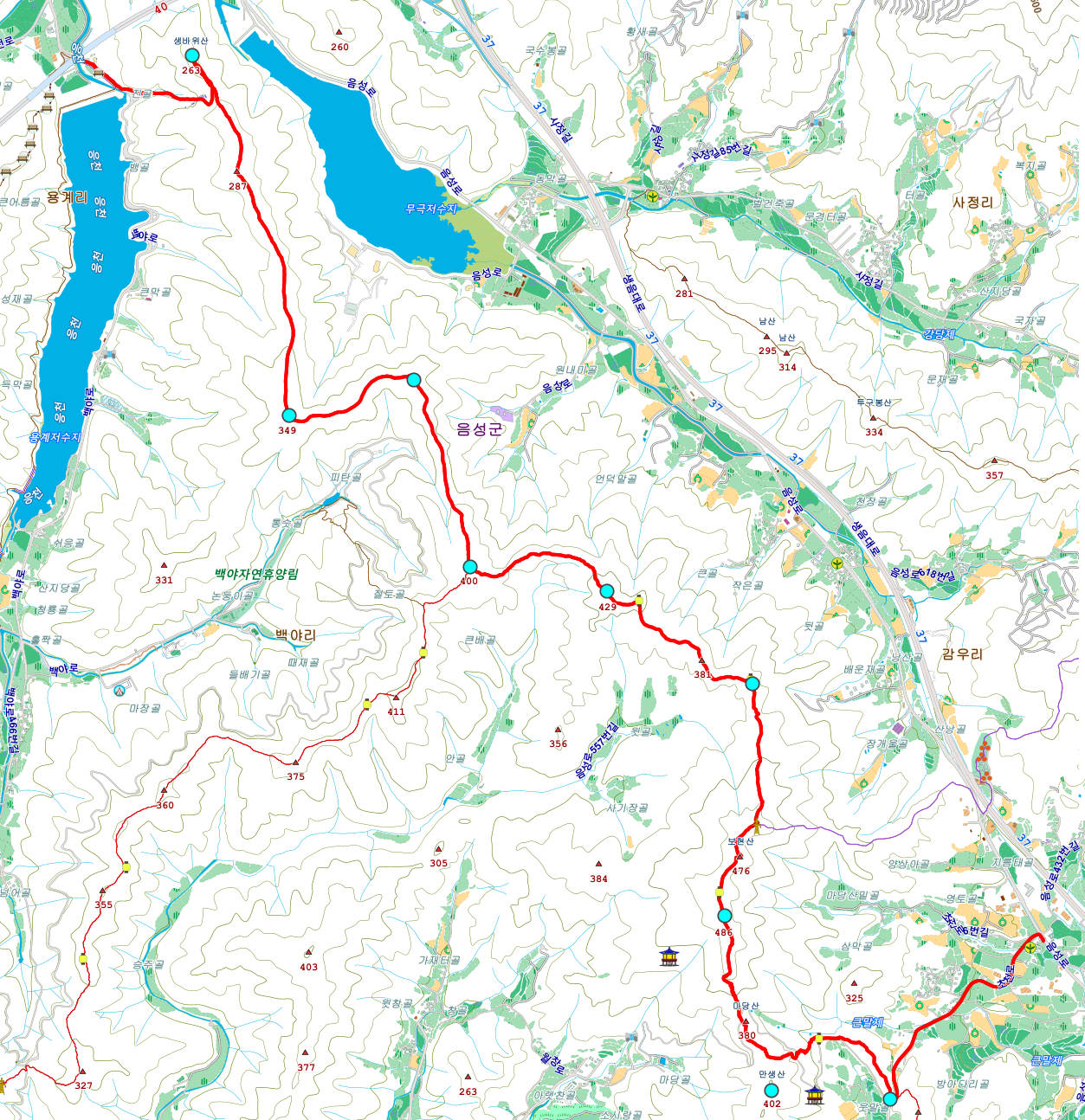 | 산행 날머리 | 충청북도 음성군 금왕읍 용계리 3-4 |