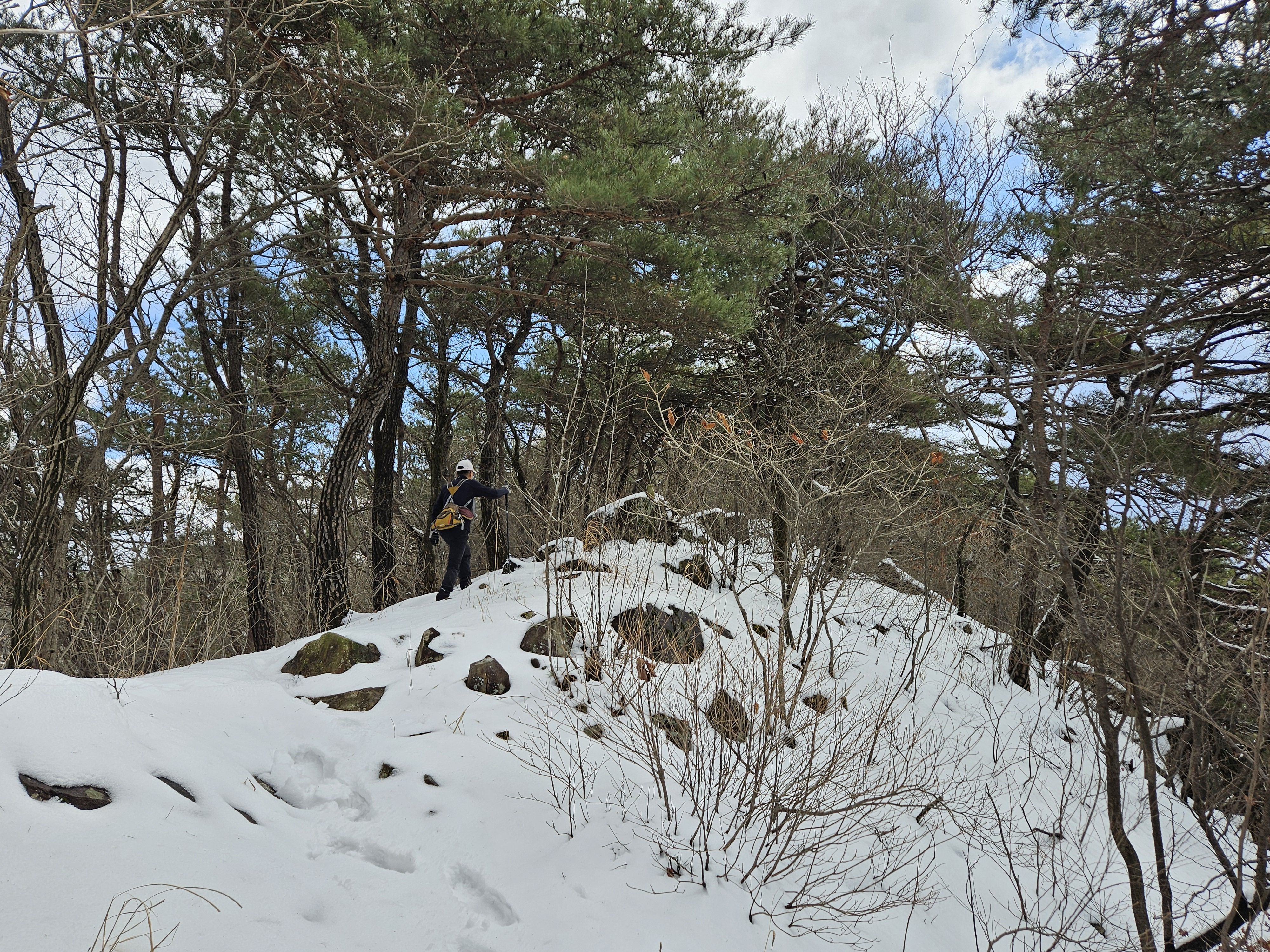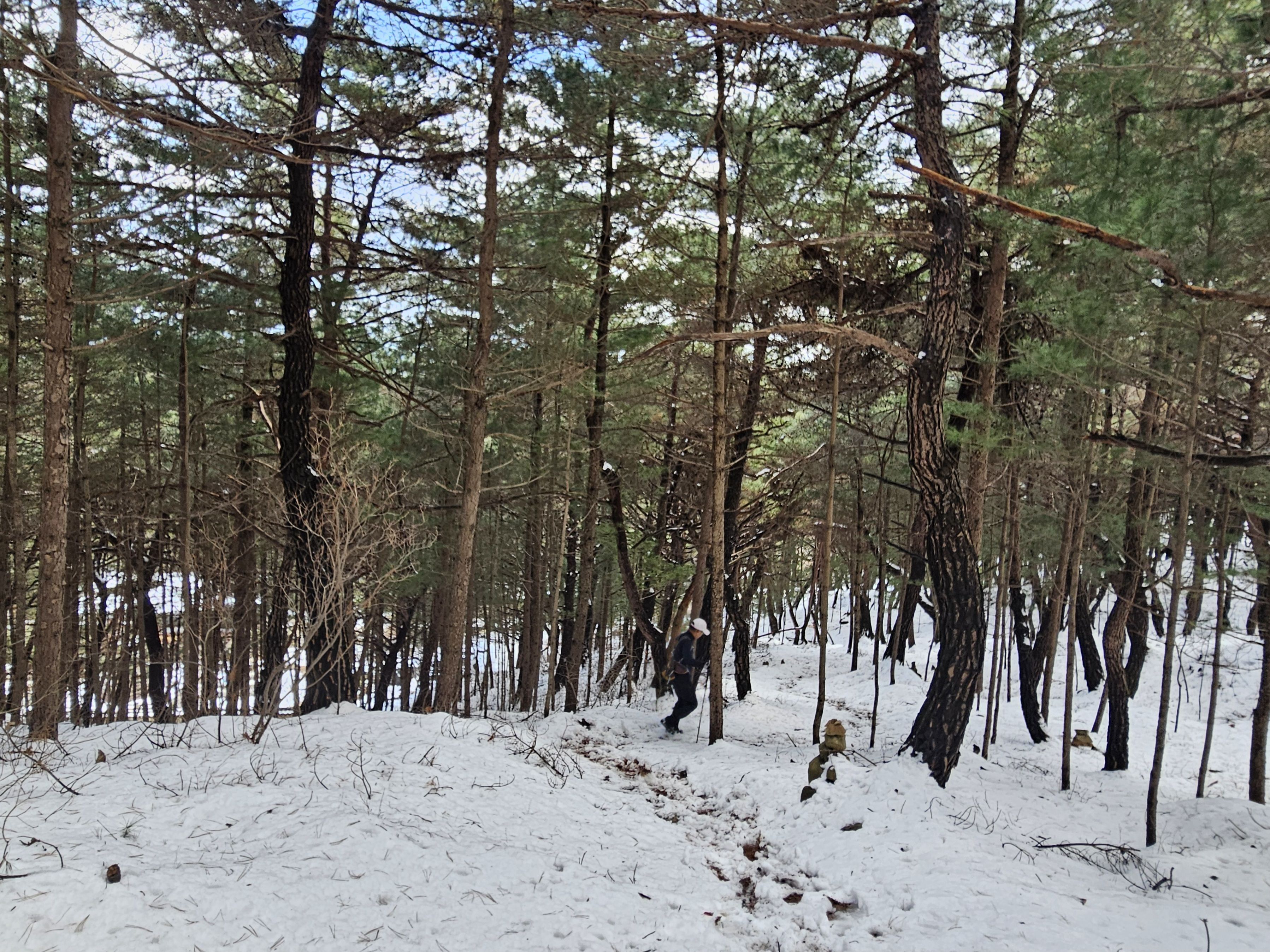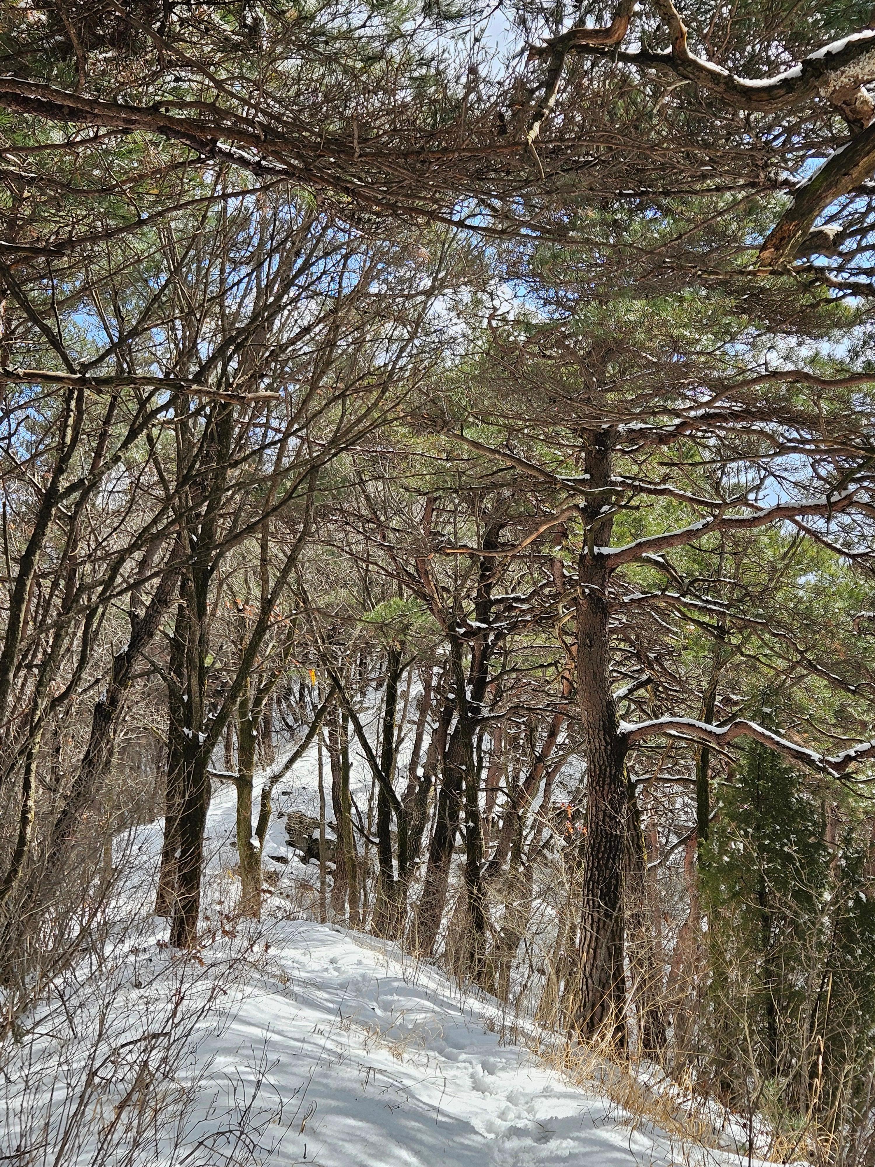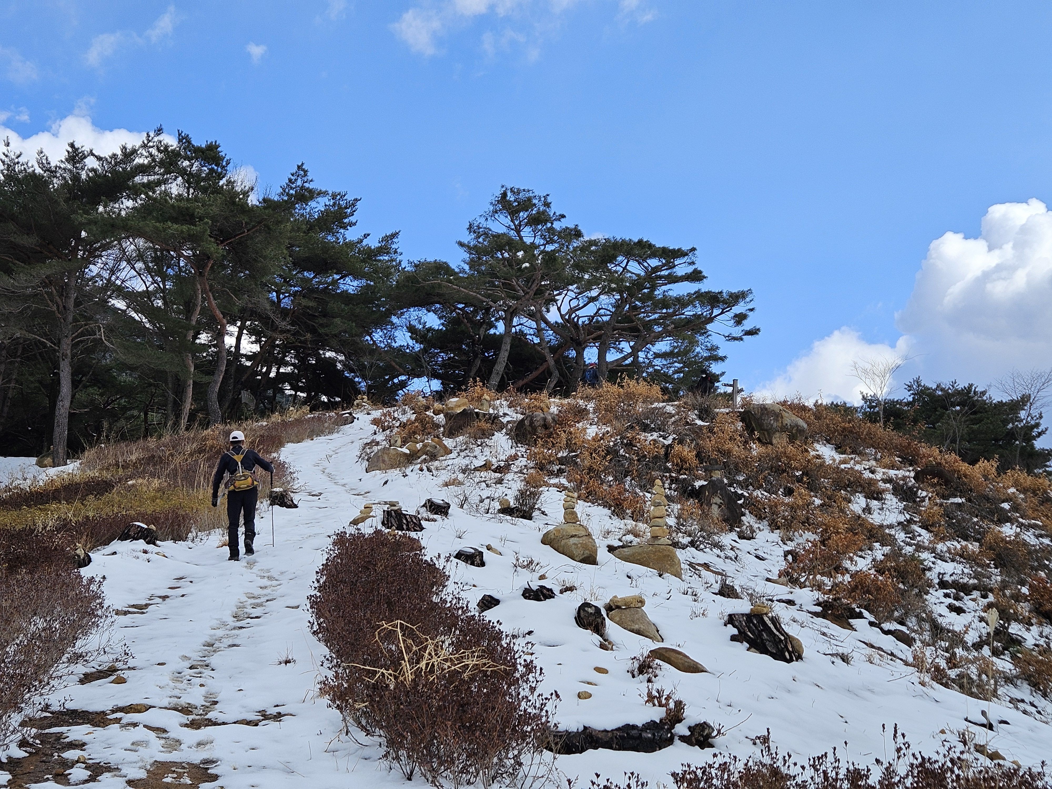 눈이 많고 가파른 오르막 과 너덜길 미끄러워 조심조심...