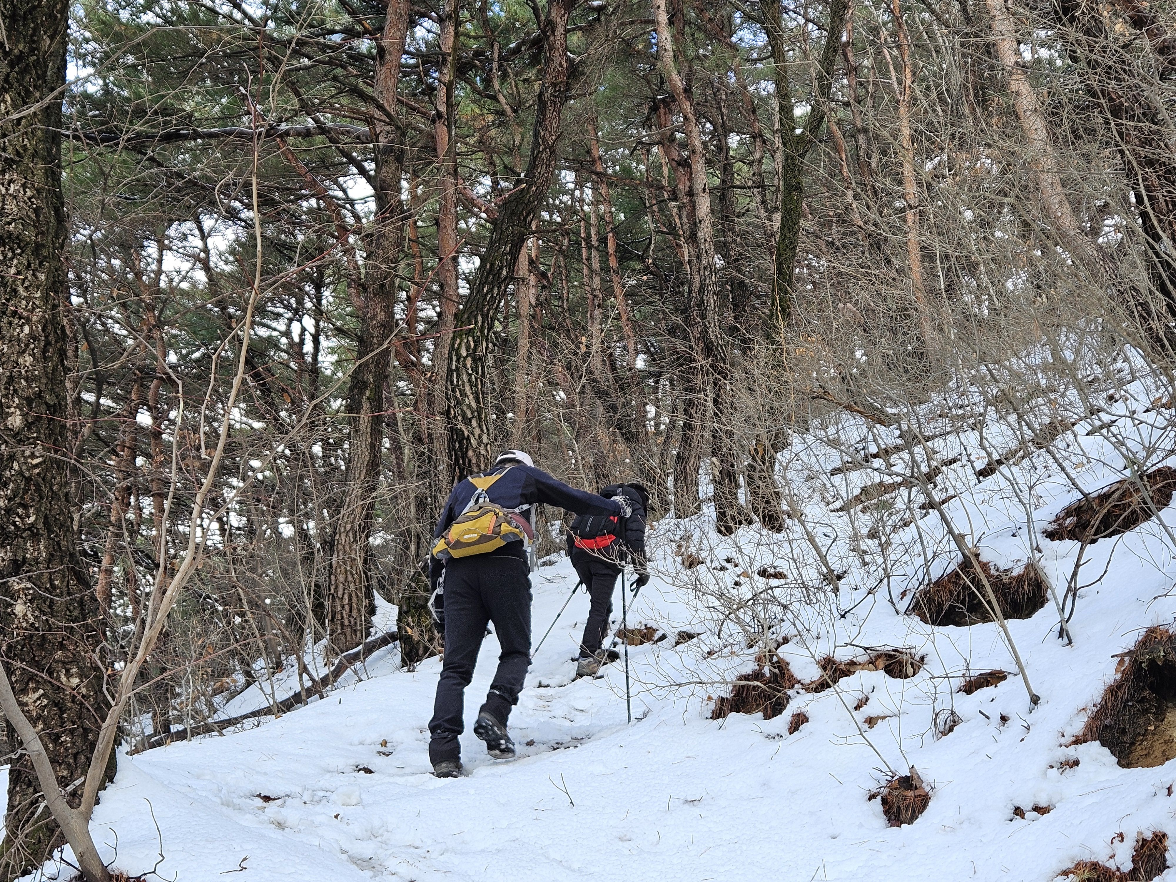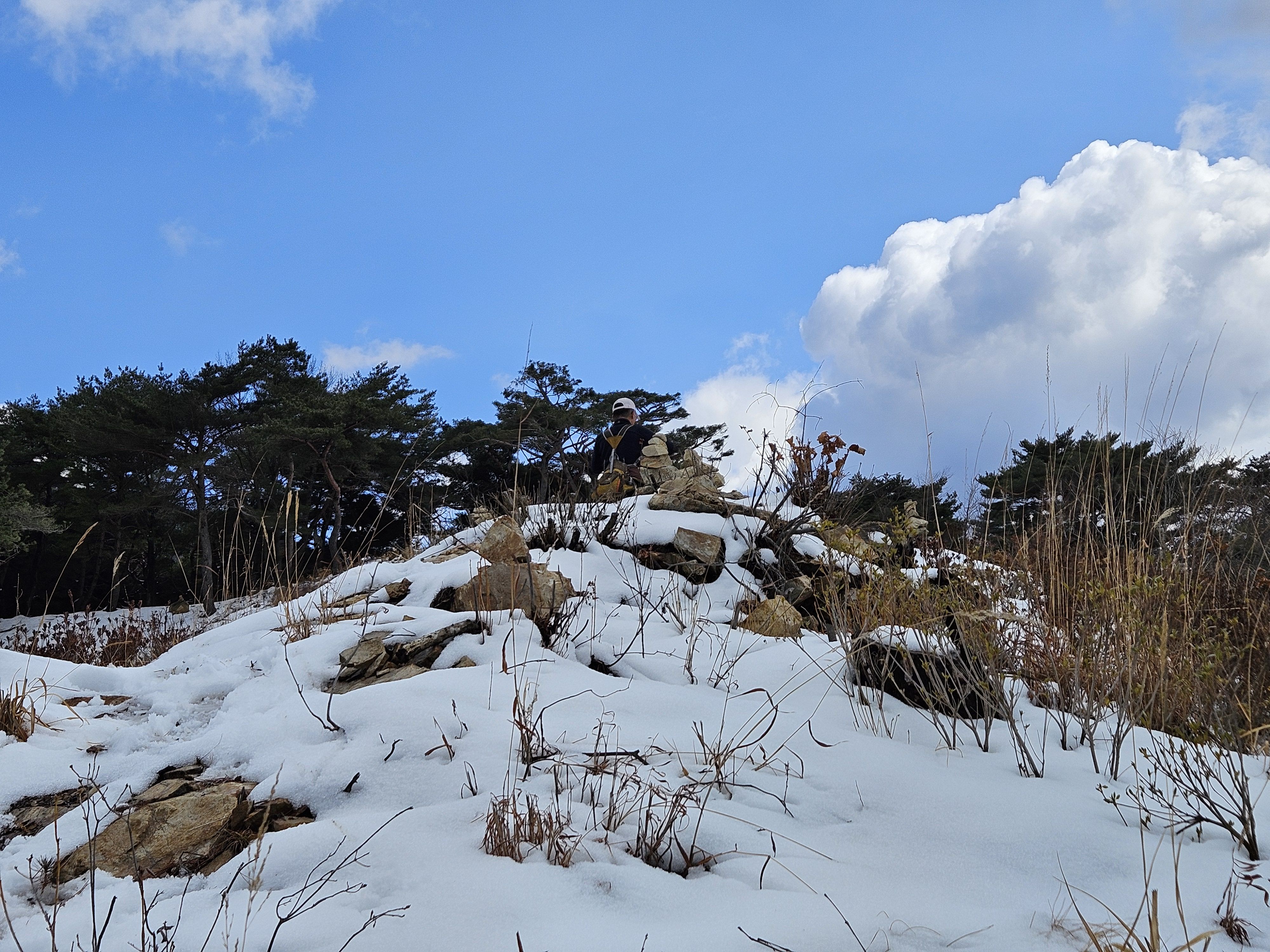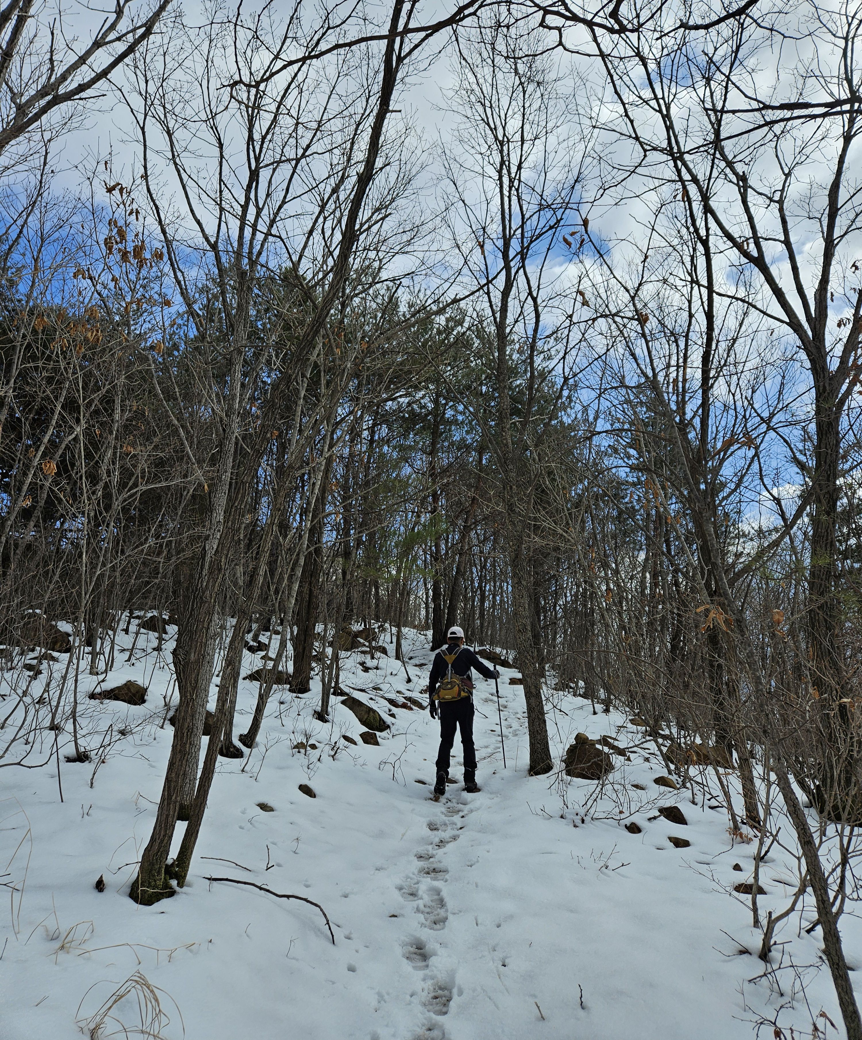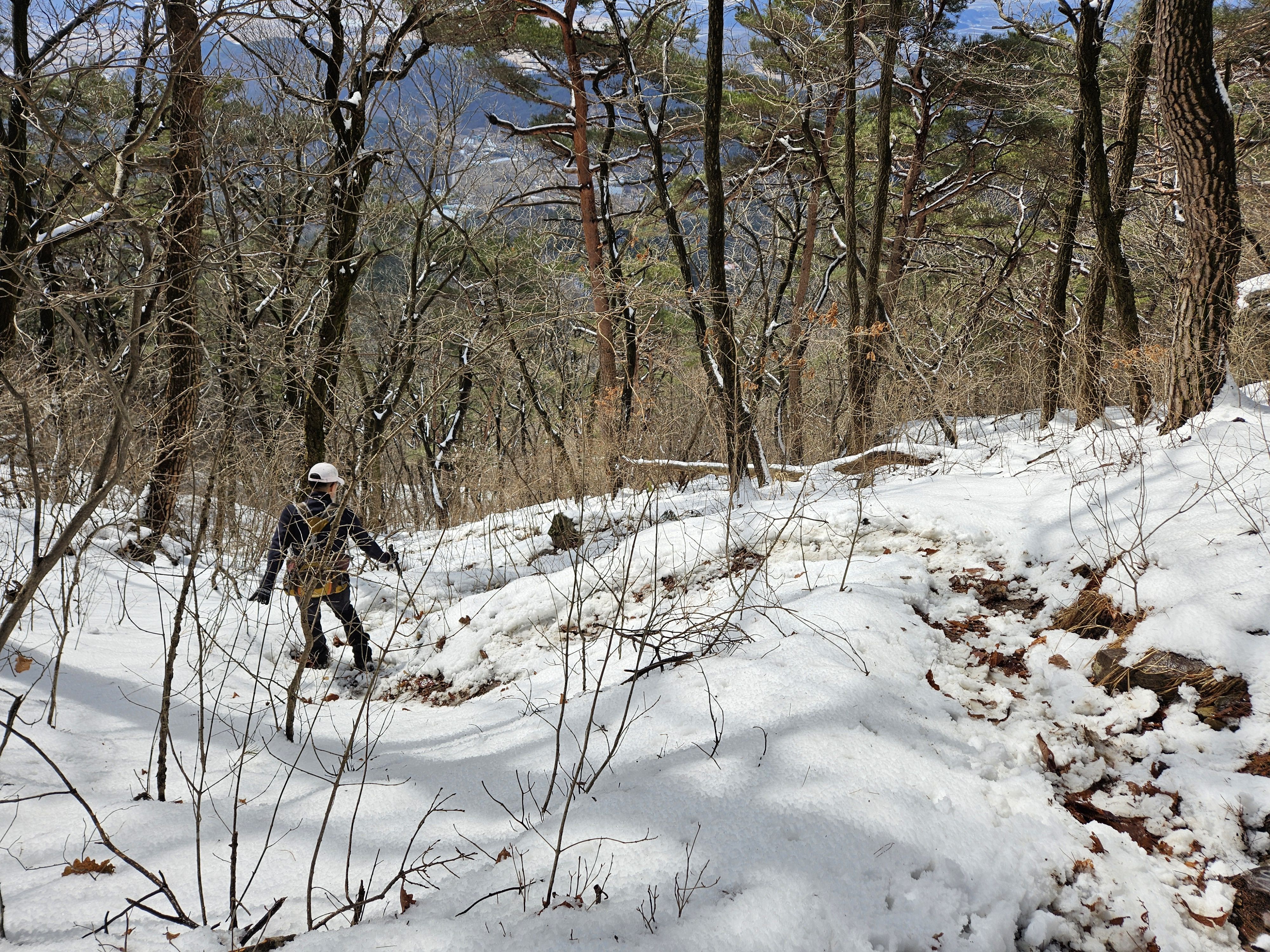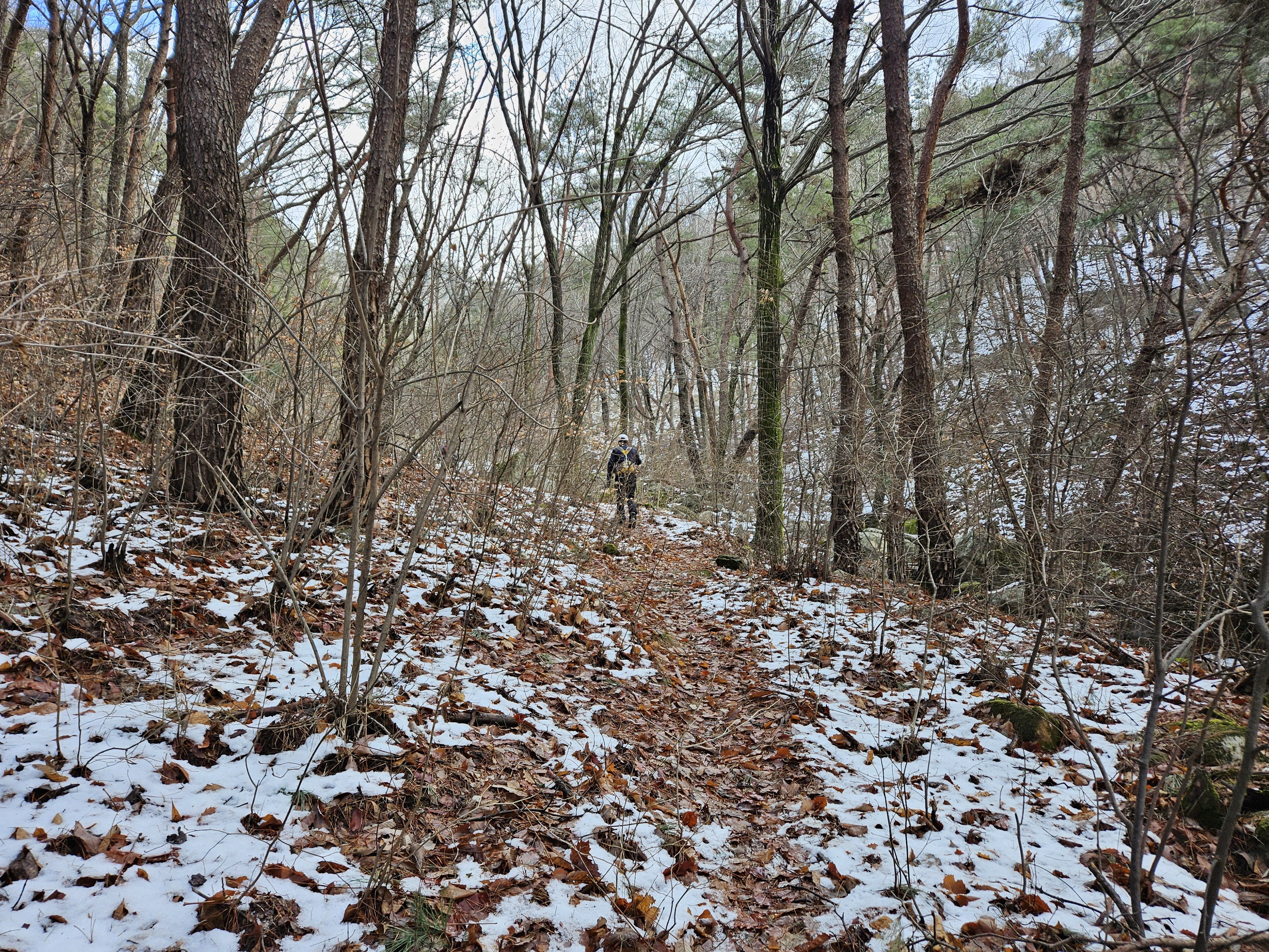 눈이 많고 가파른 오르막 과 너덜길 미끄러워 조심조심...