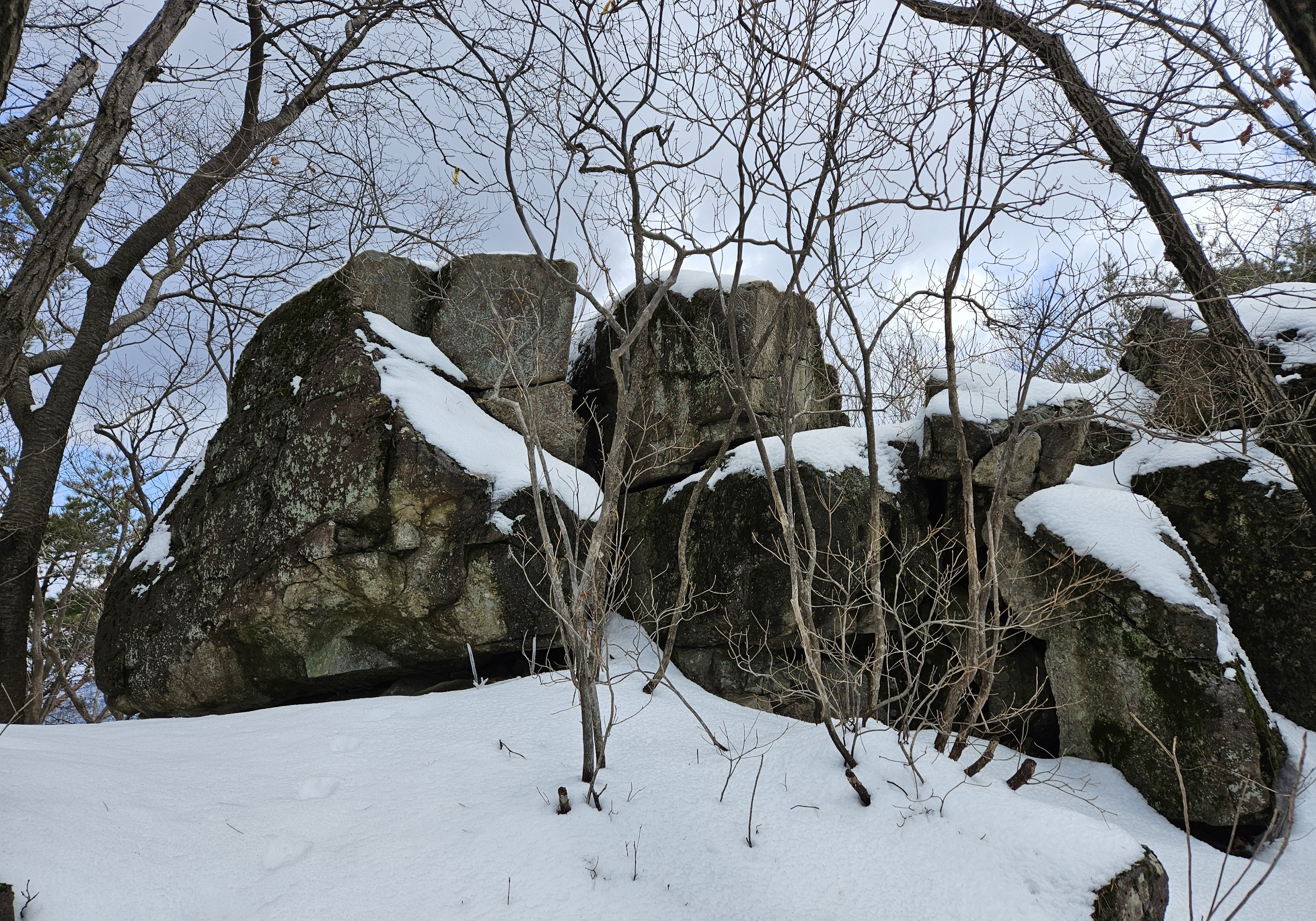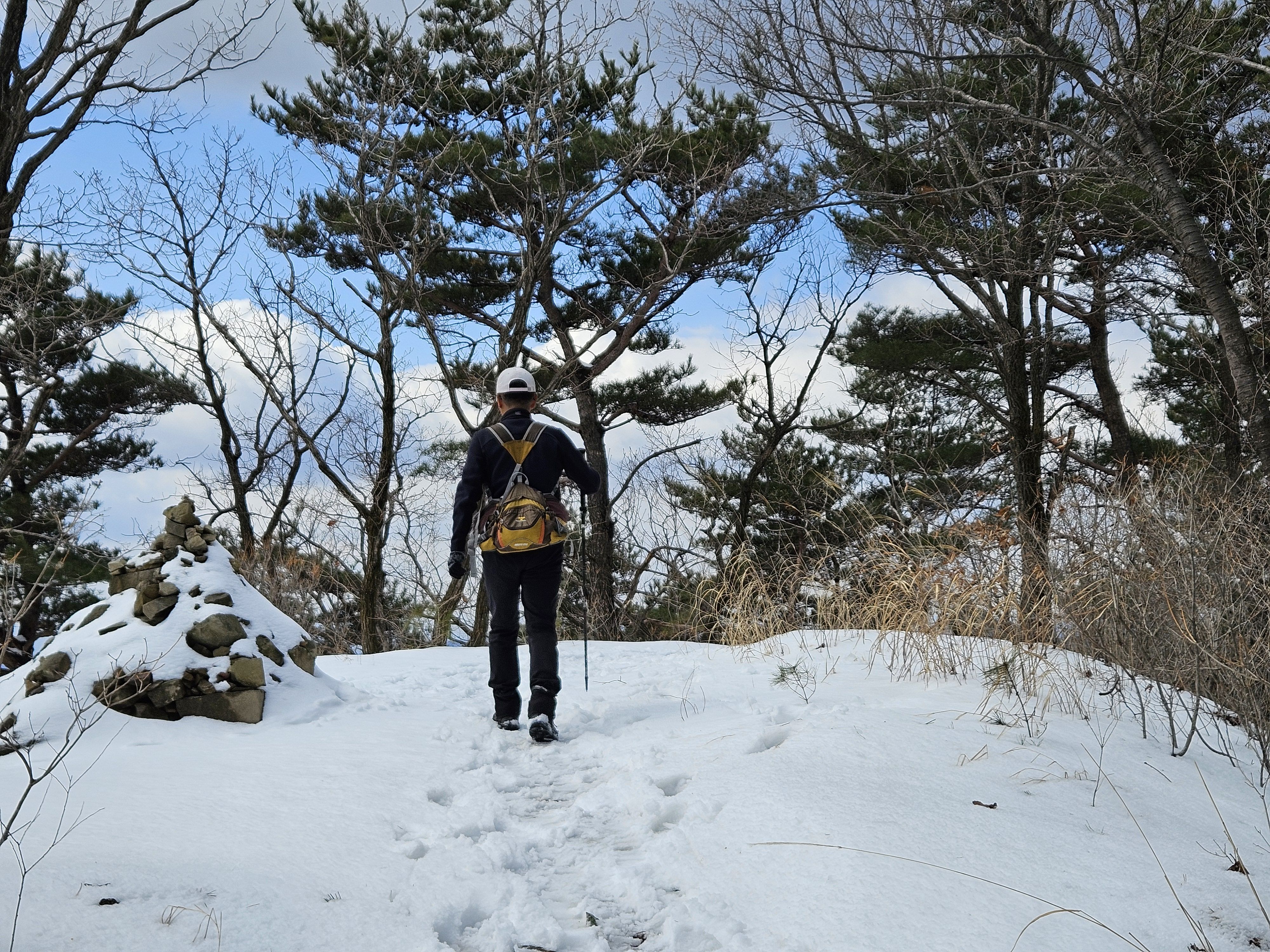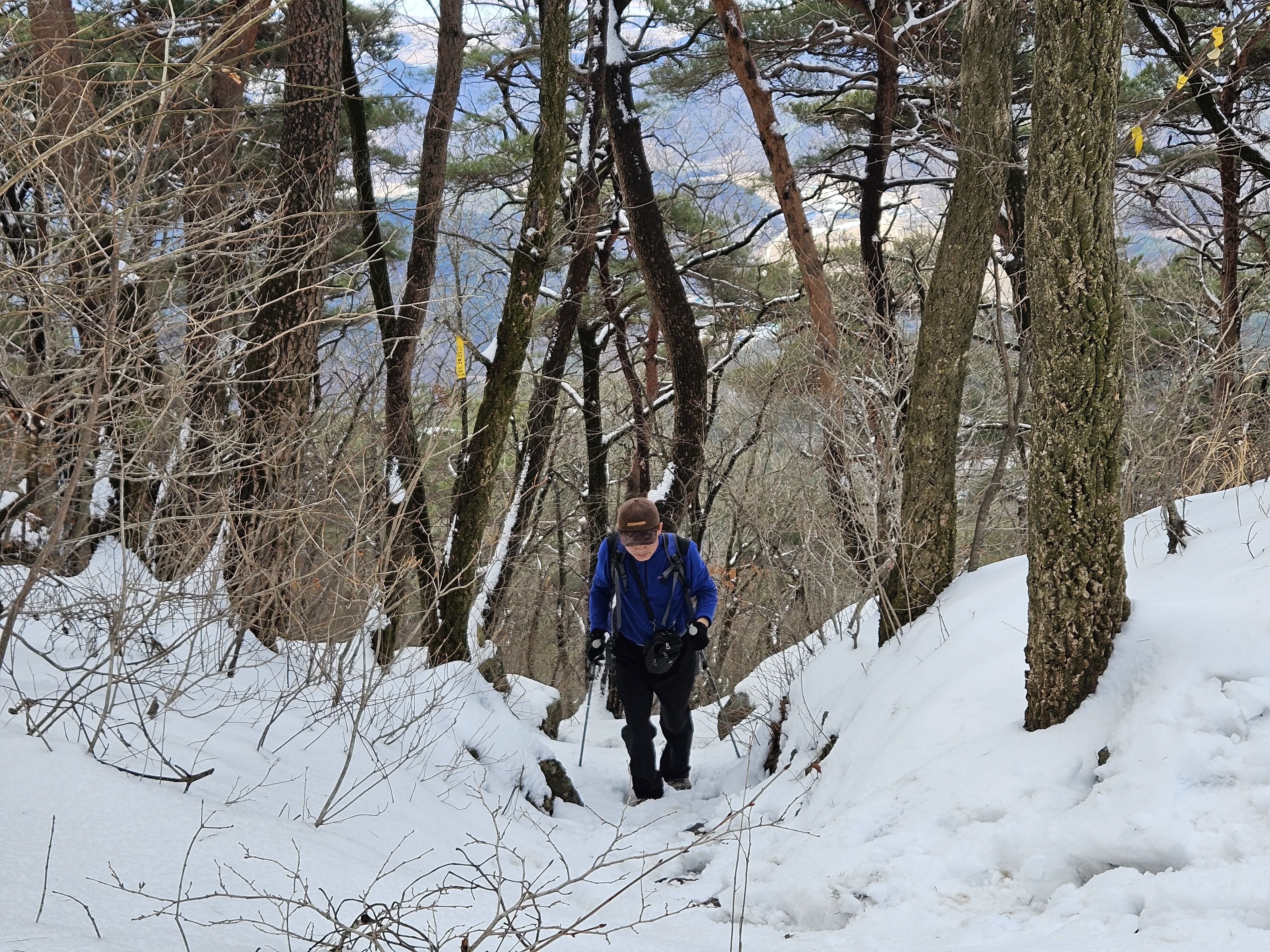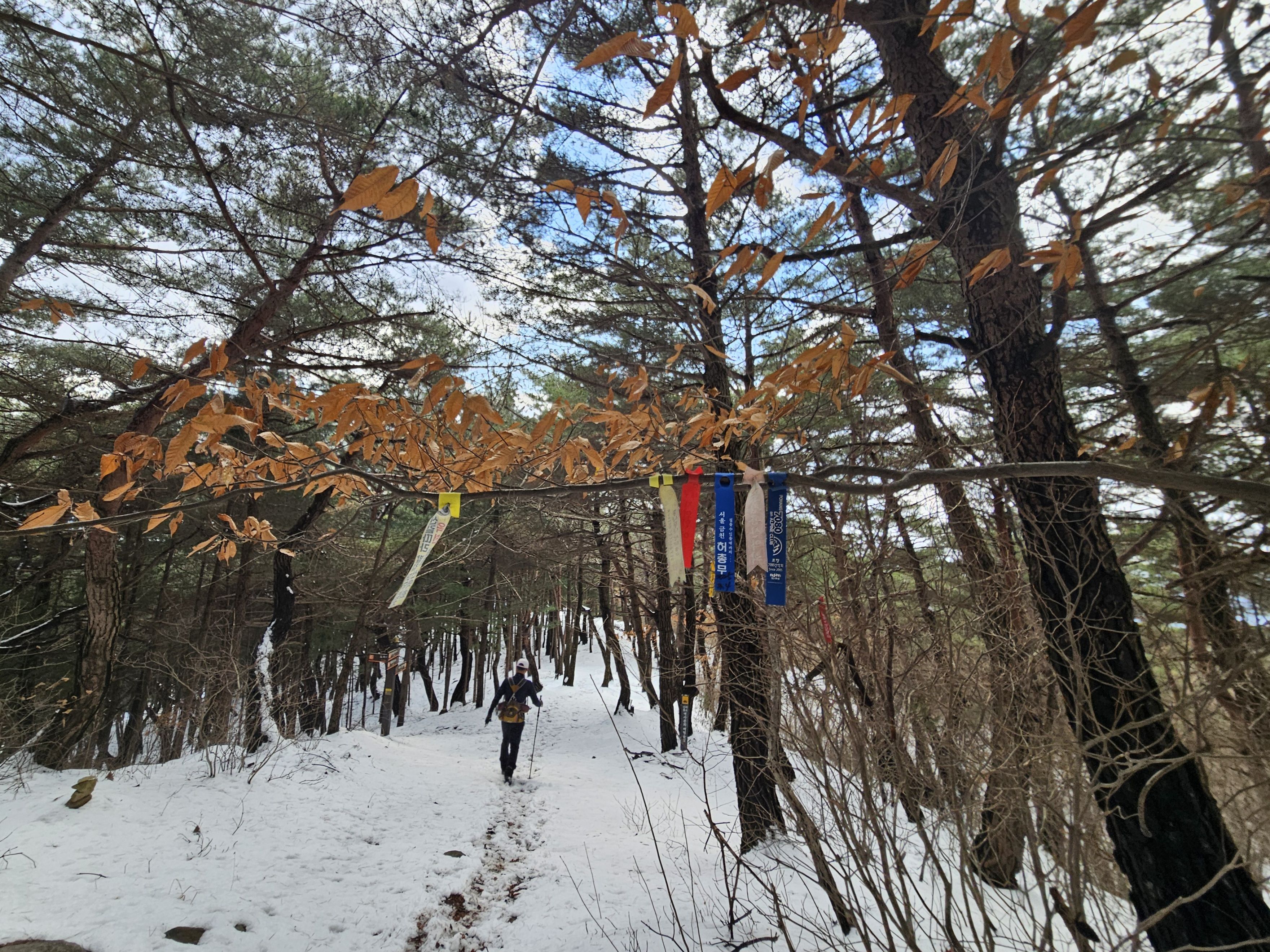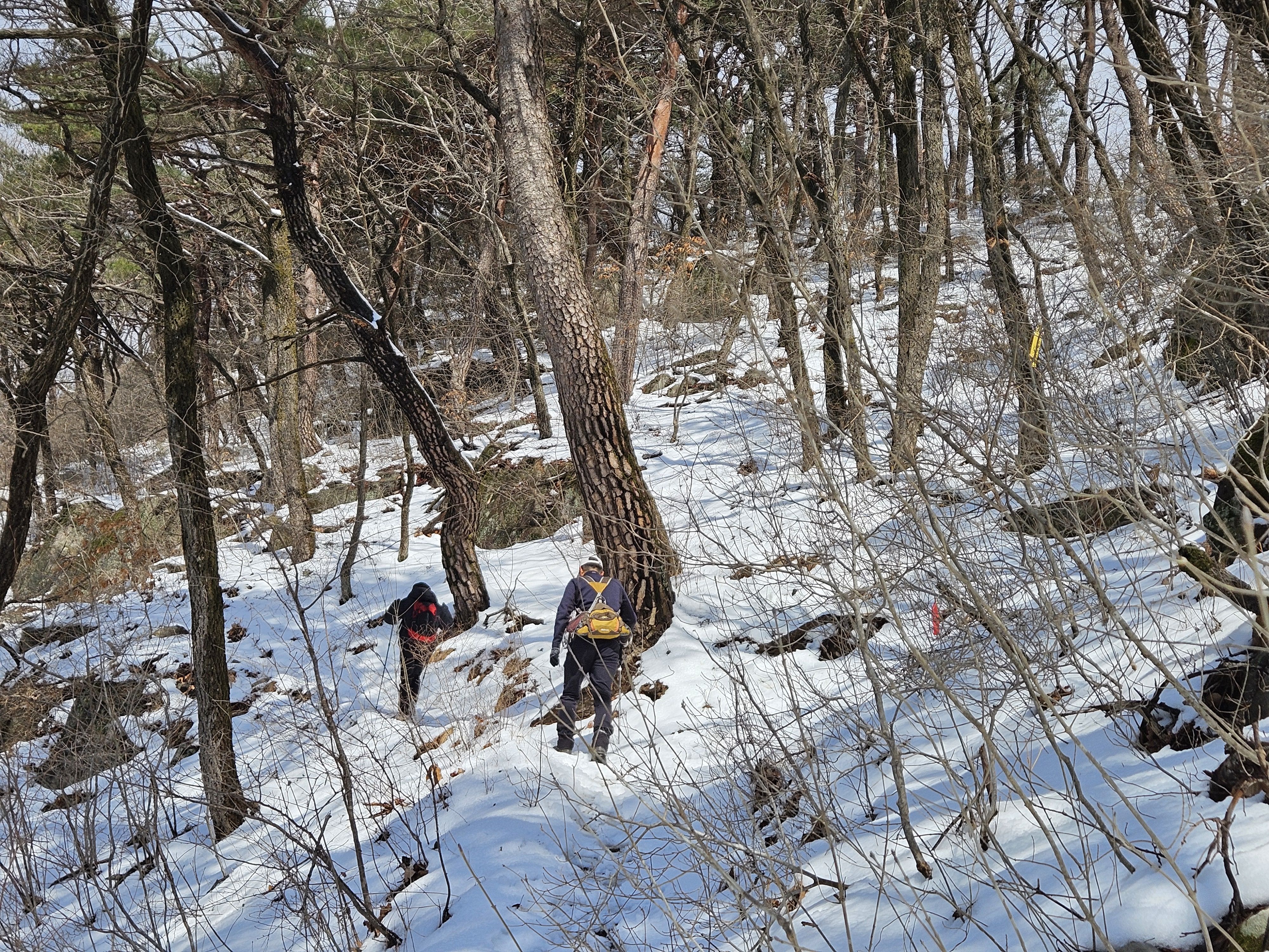 눈이 많고 가파른 오르막 과 너덜길 미끄러워 조심조심...