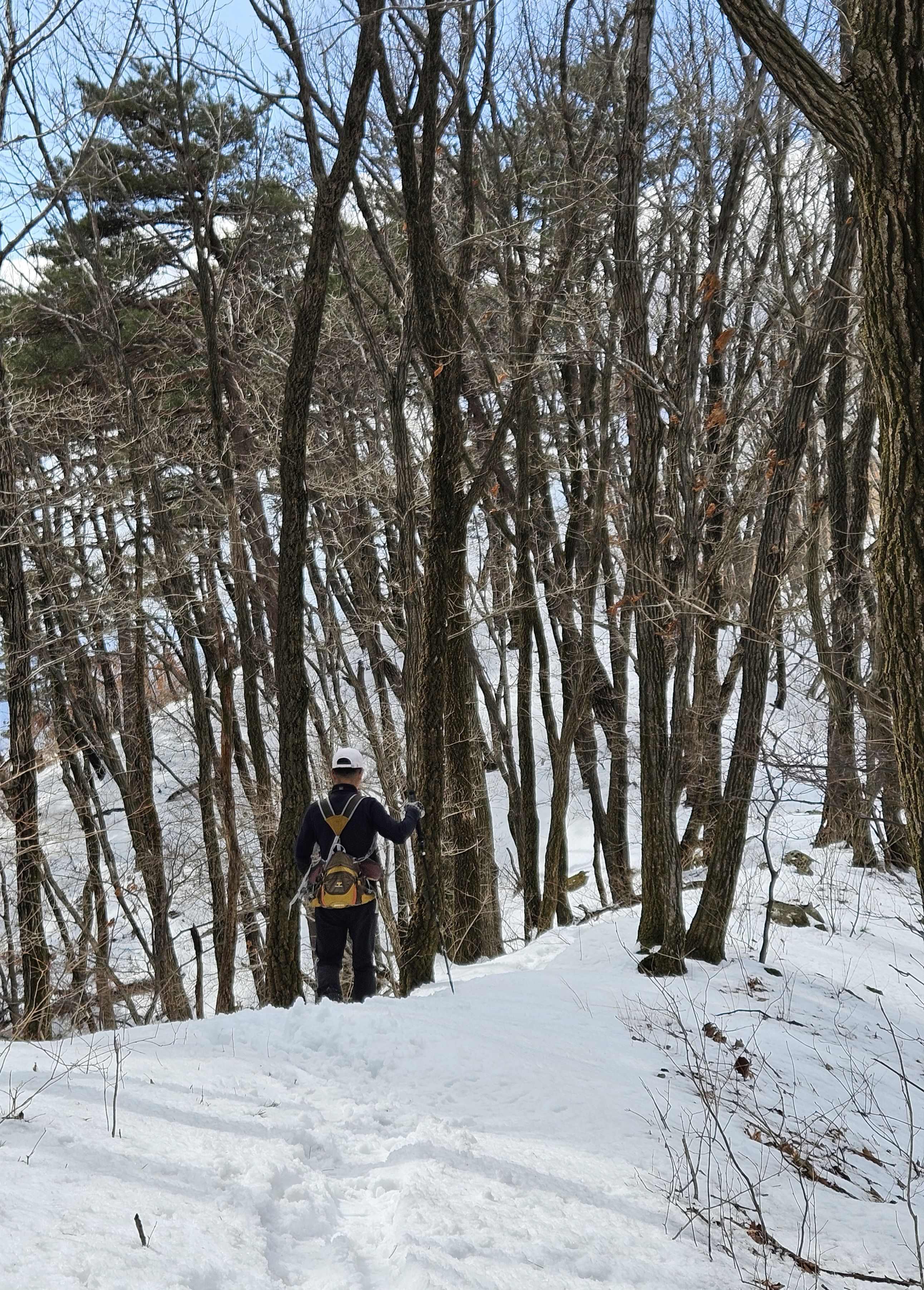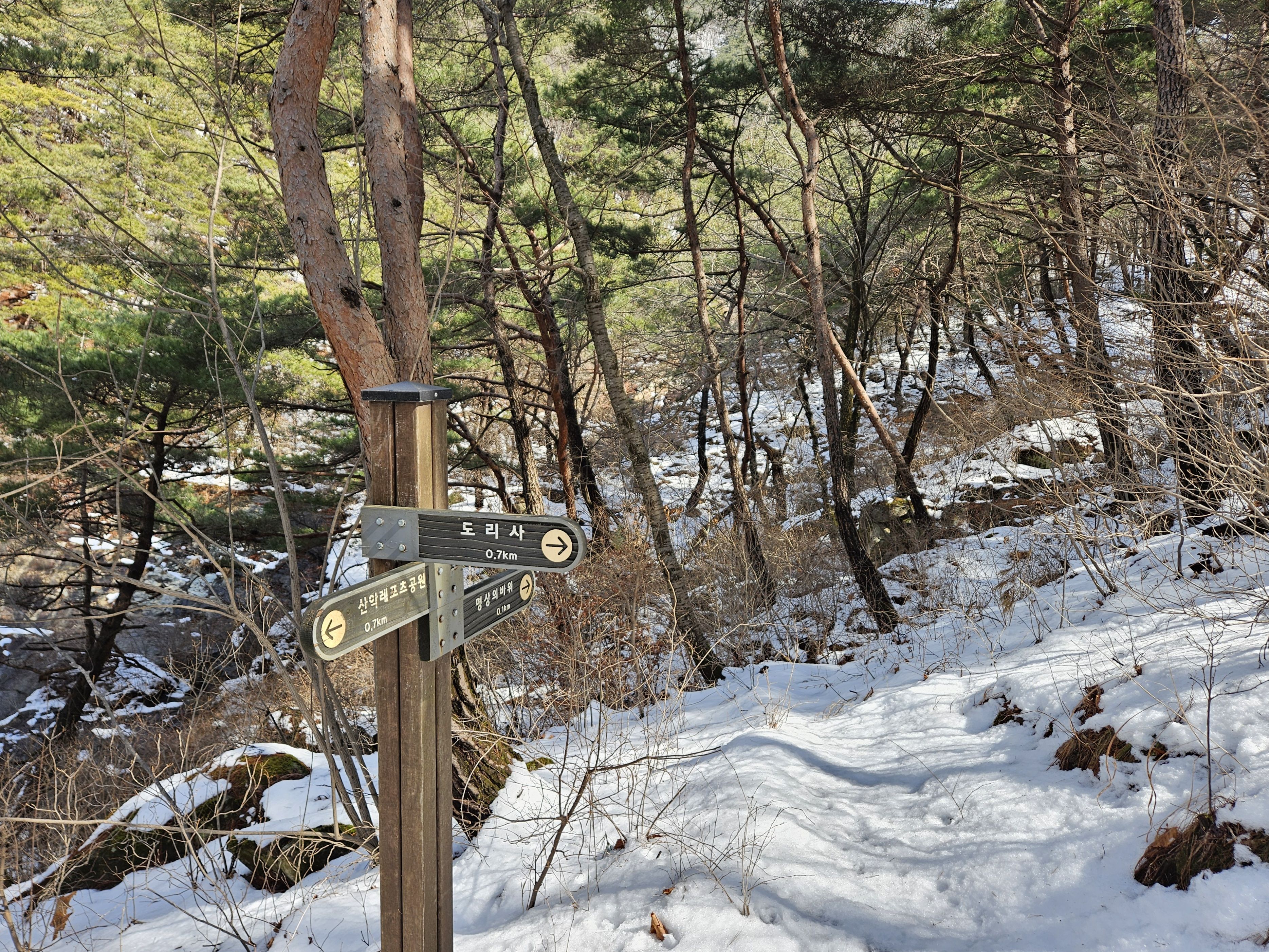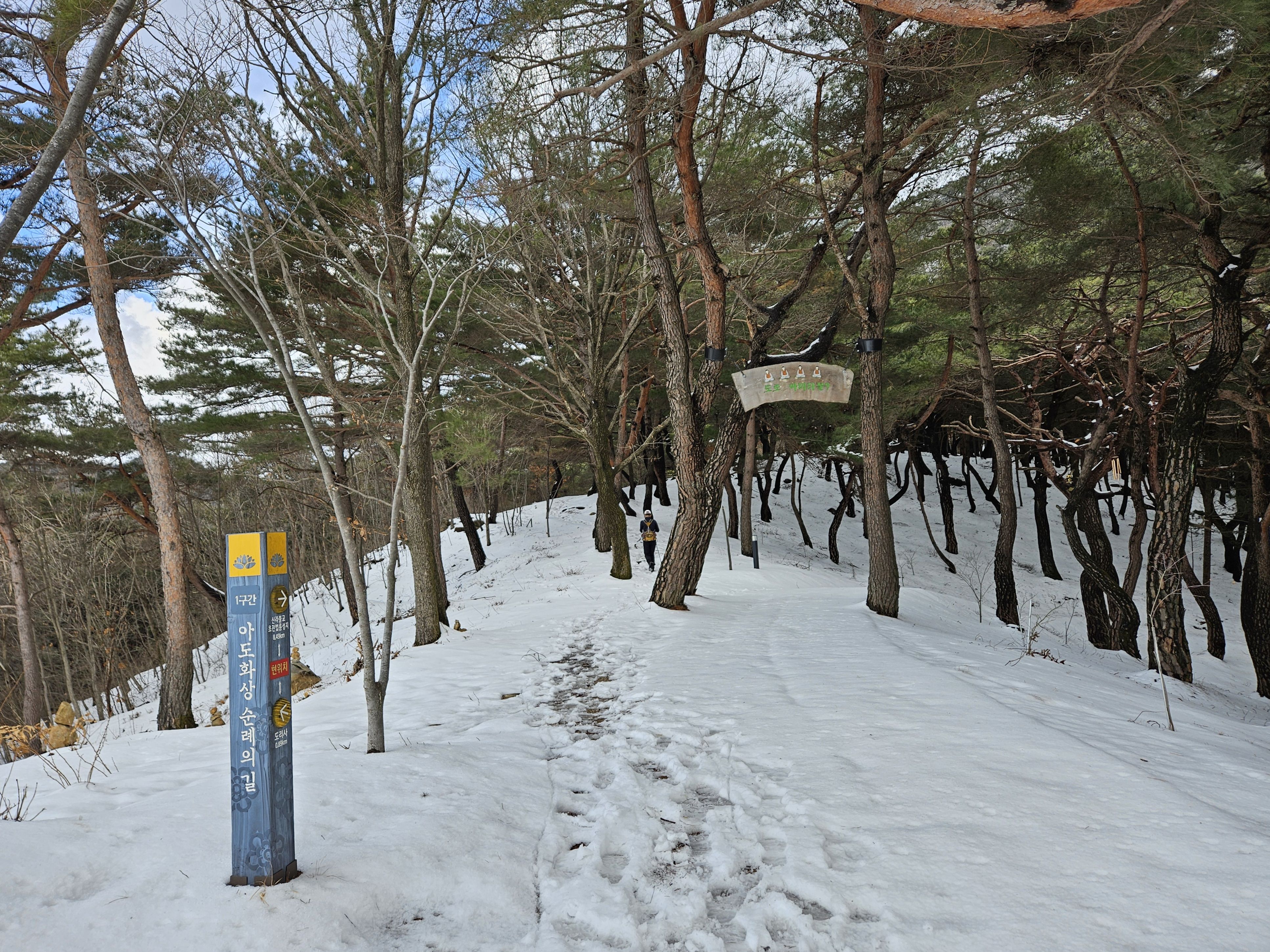 눈이 많아진 등로로 더 진행해서 하산 하지 않고 빽으로 하산...(도리사 전 100m 지점에서 도리사로 직행 할 예정)