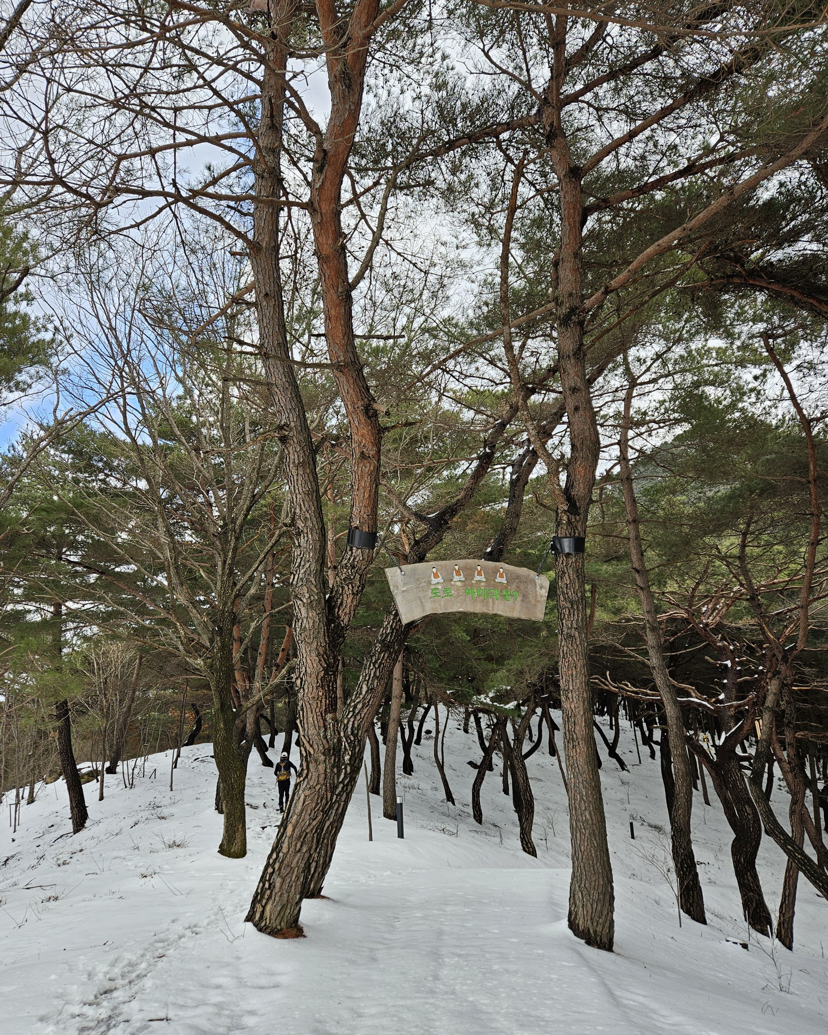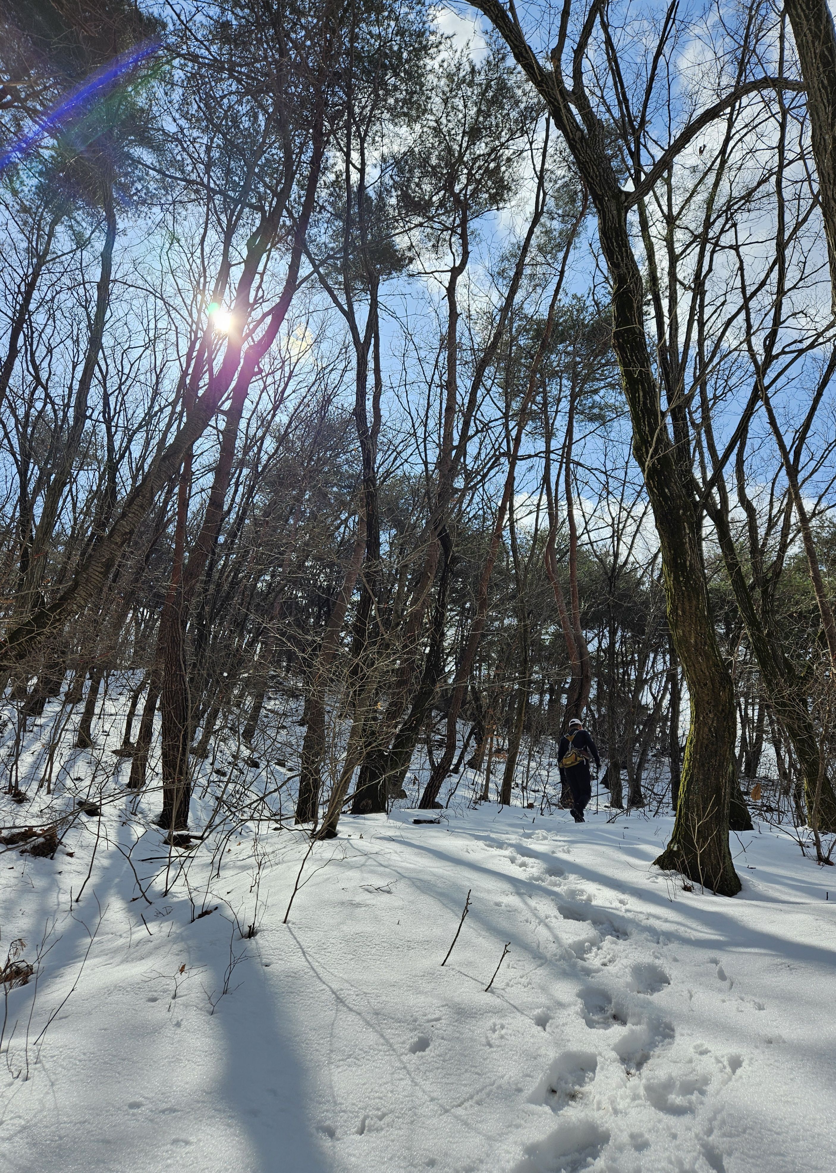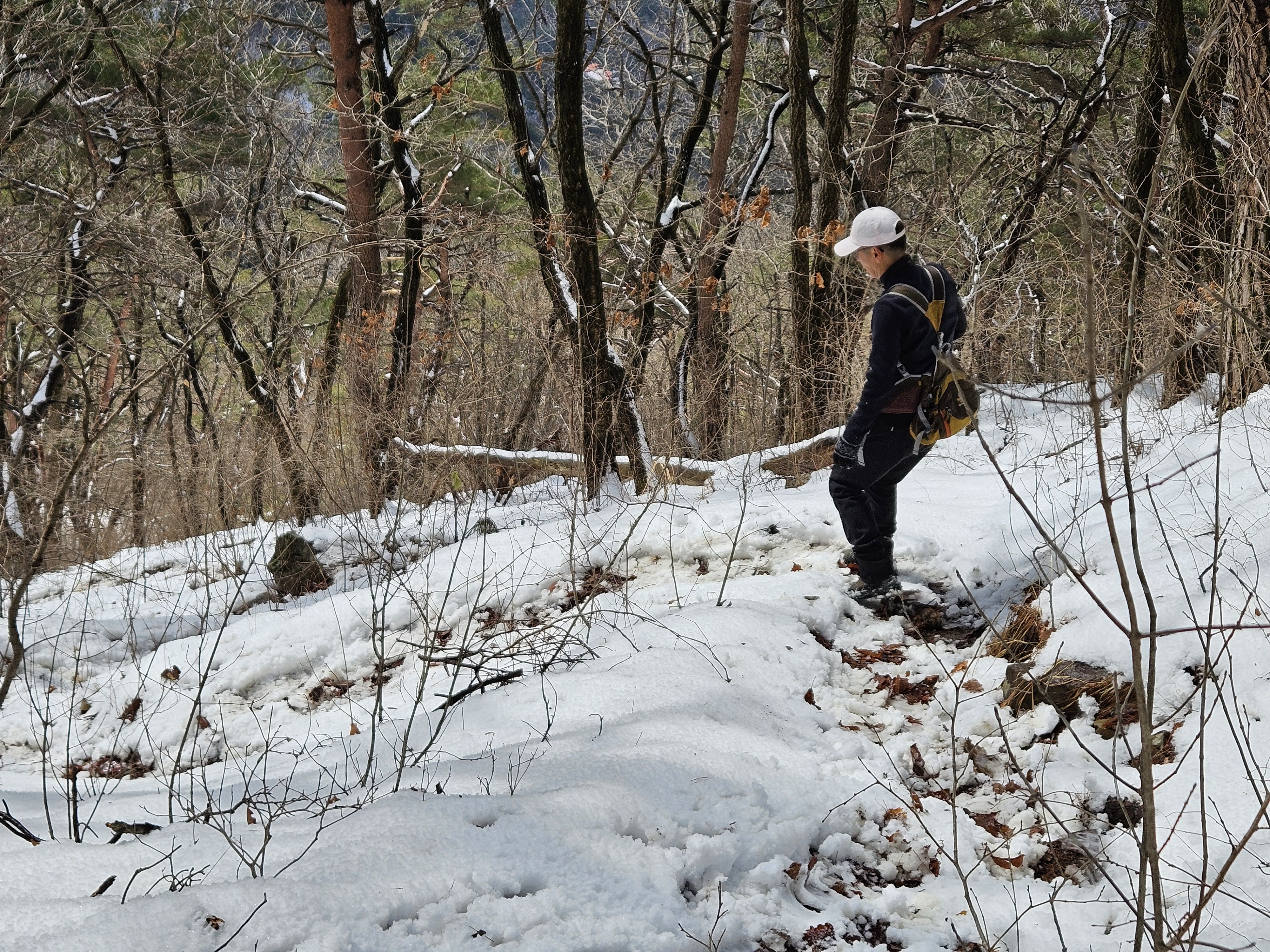 눈이 많아진 등로로 더 진행해서 하산 하지 않고 빽으로 하산...(도리사 전 100m 지점에서 도리사로 직행 할 예정)
