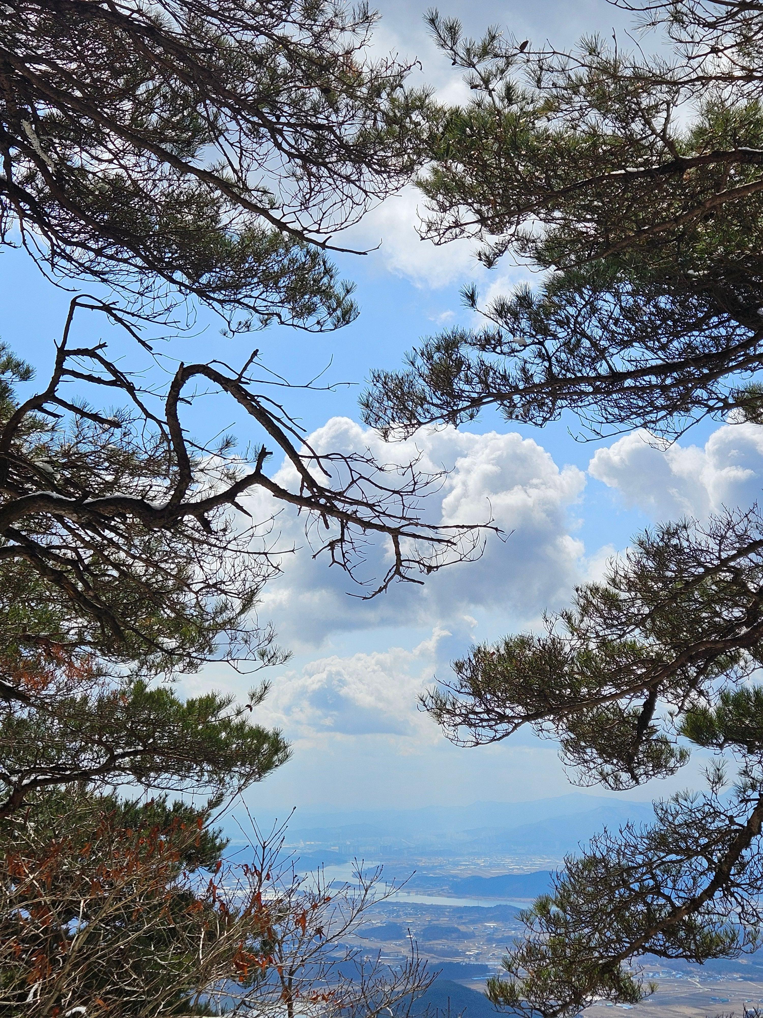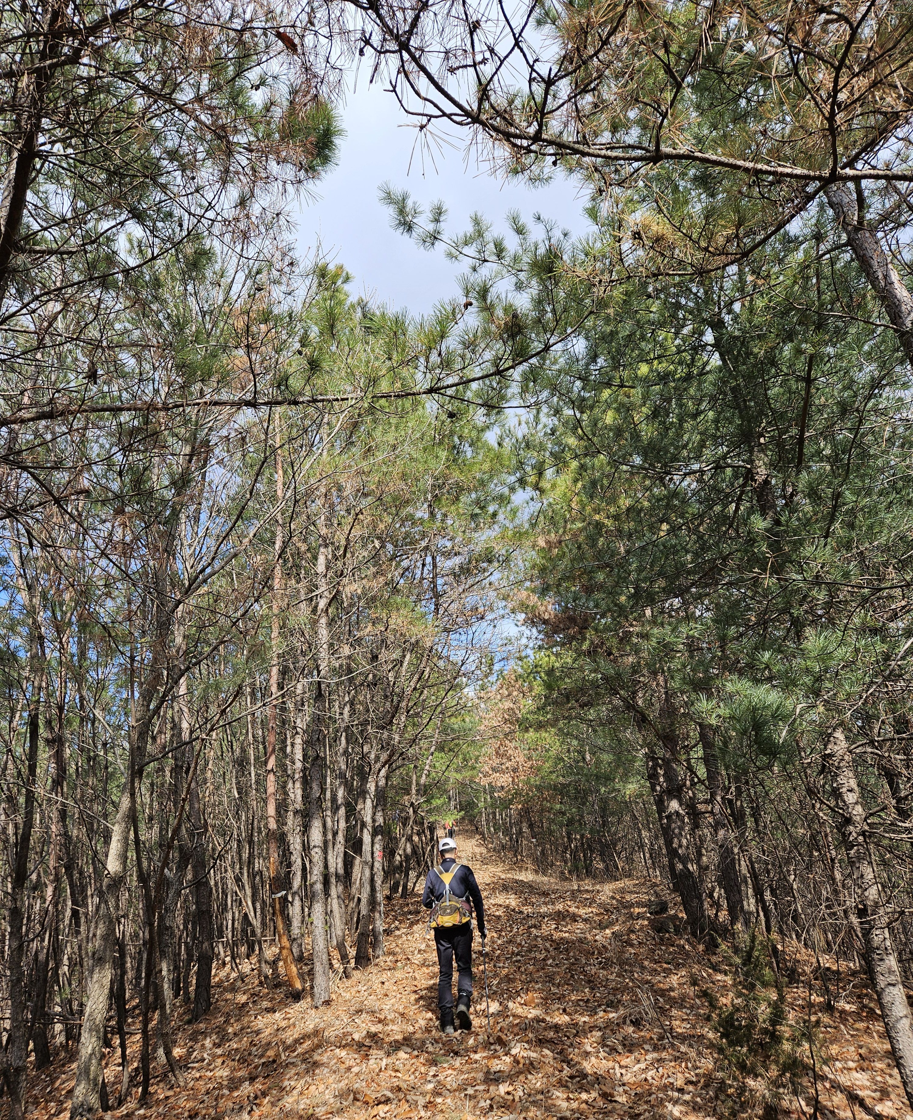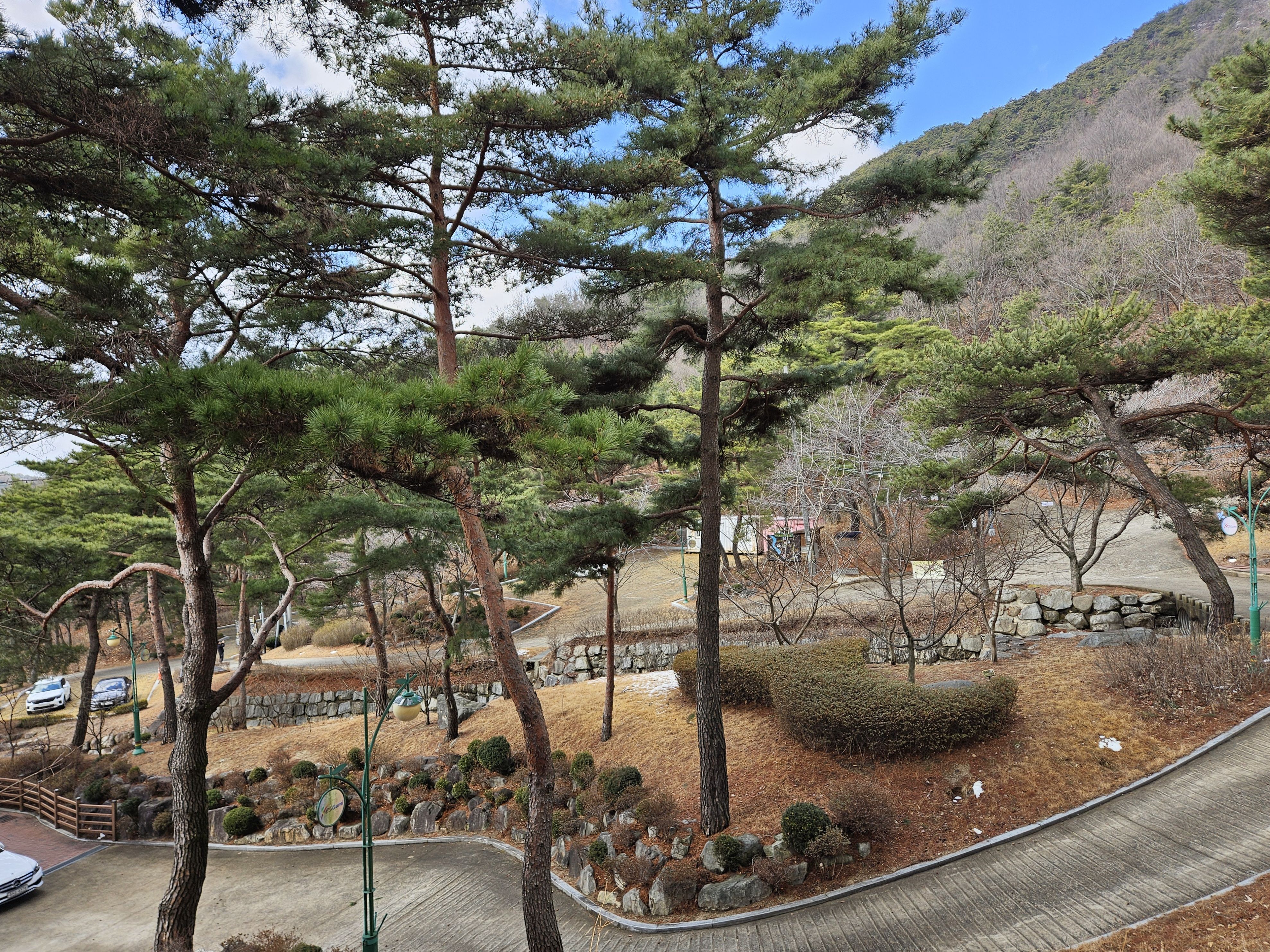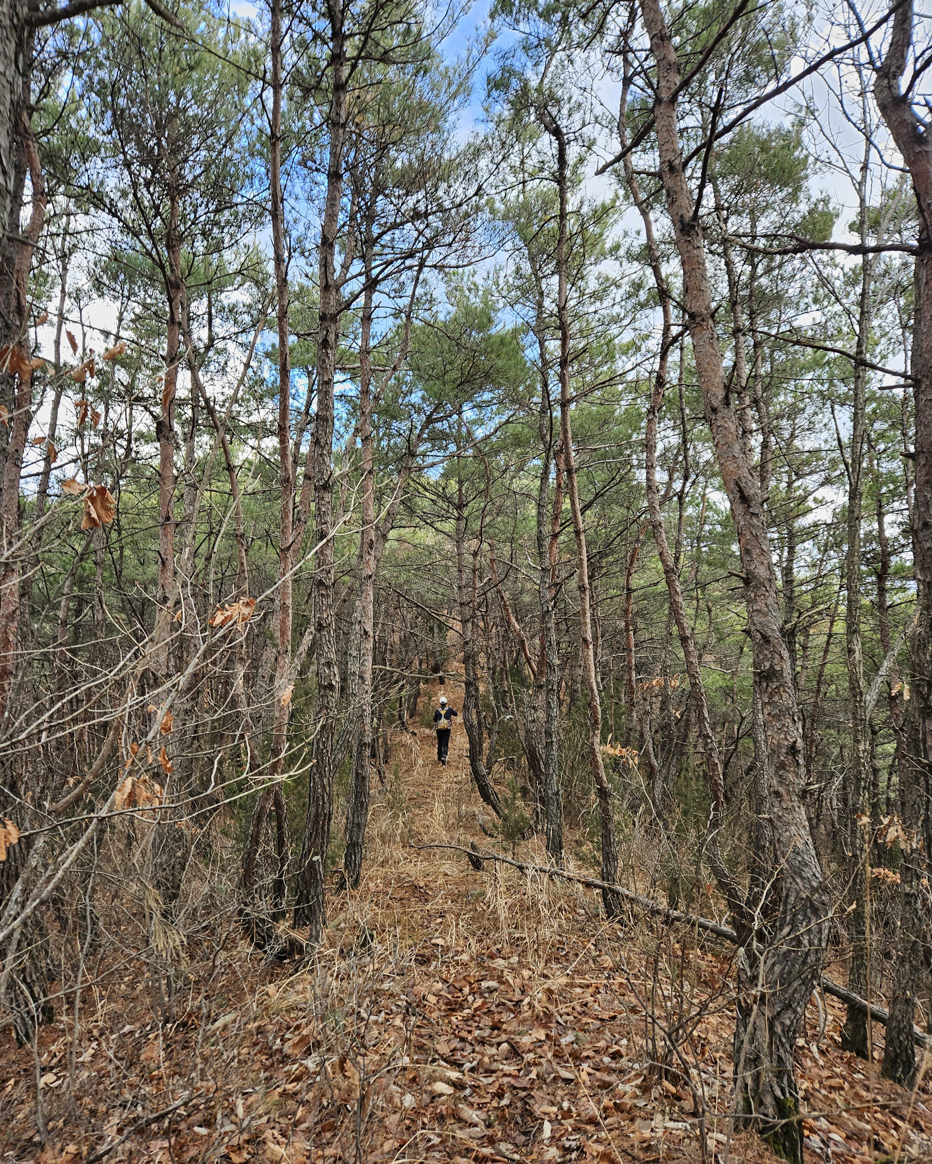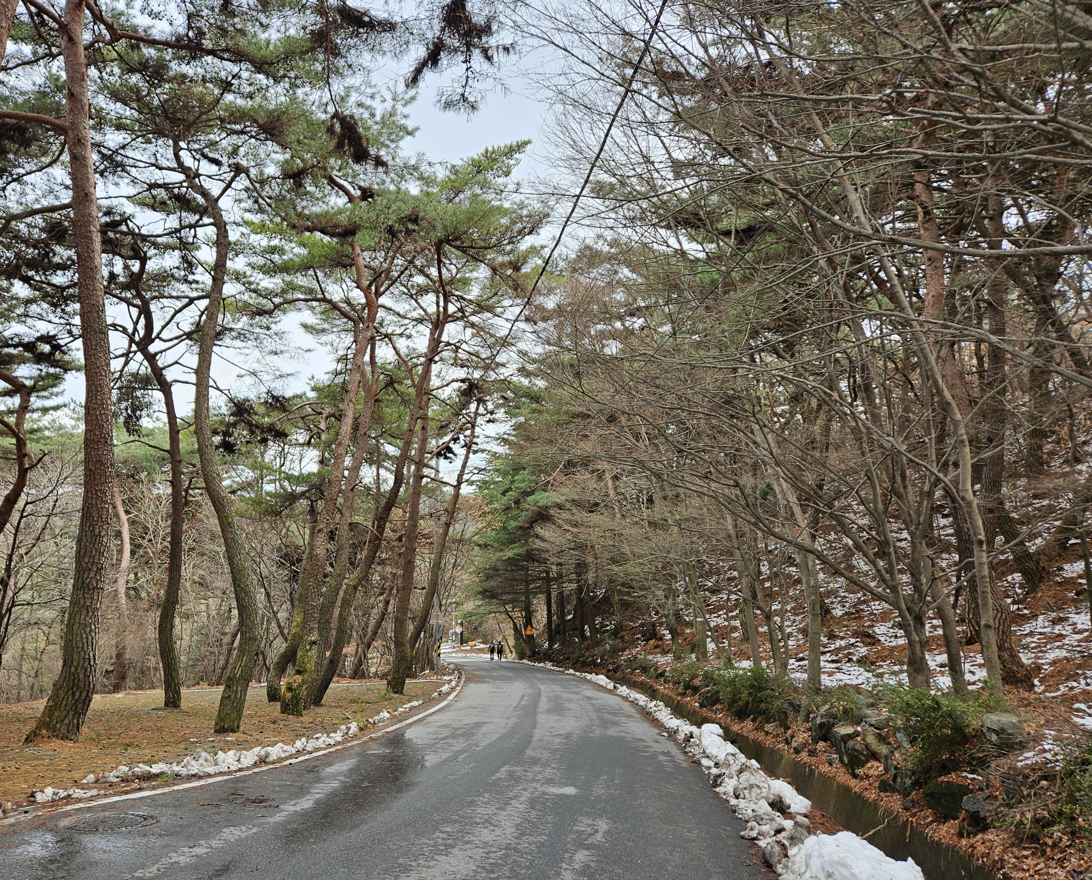 아직은 눈이 없는 푸른 소나무숲길 이 멋졌습니다.