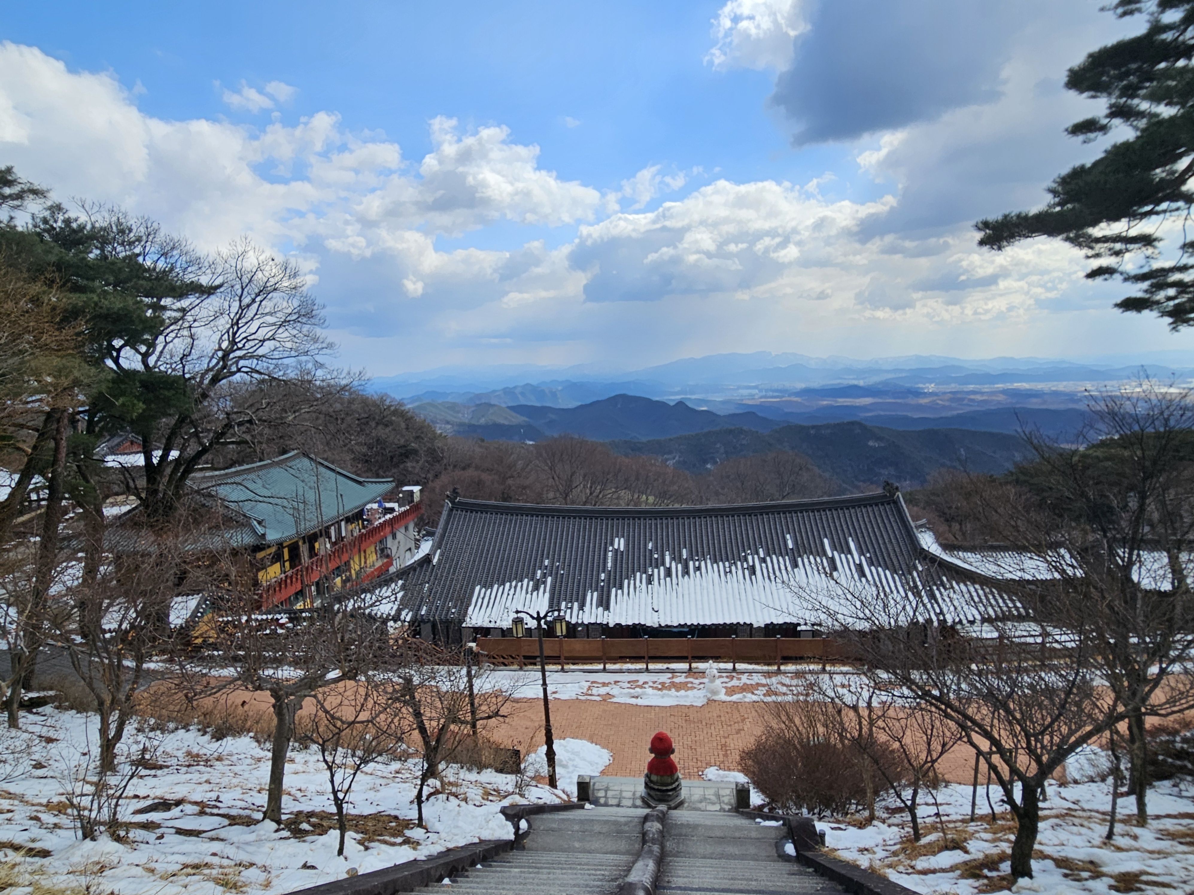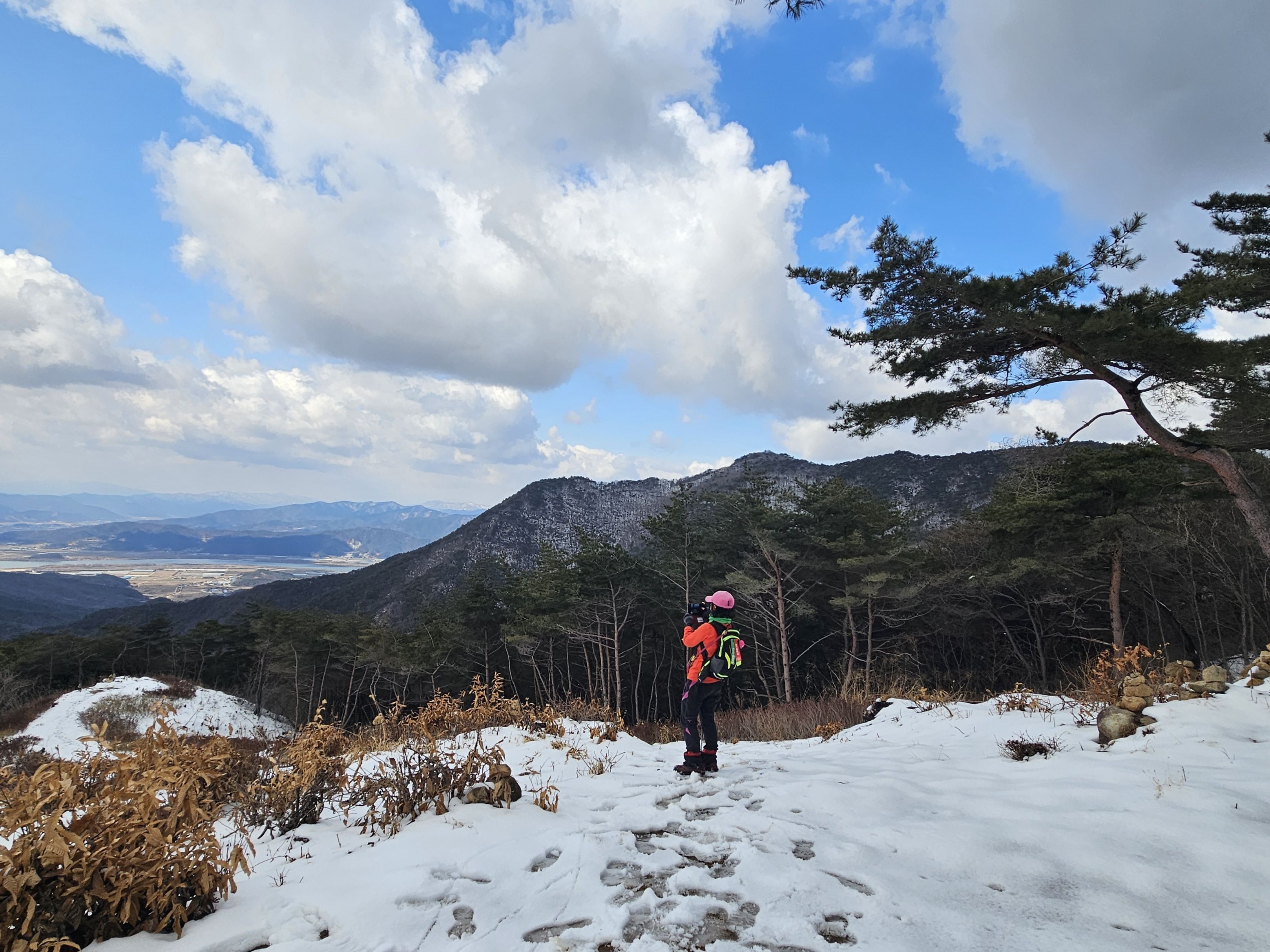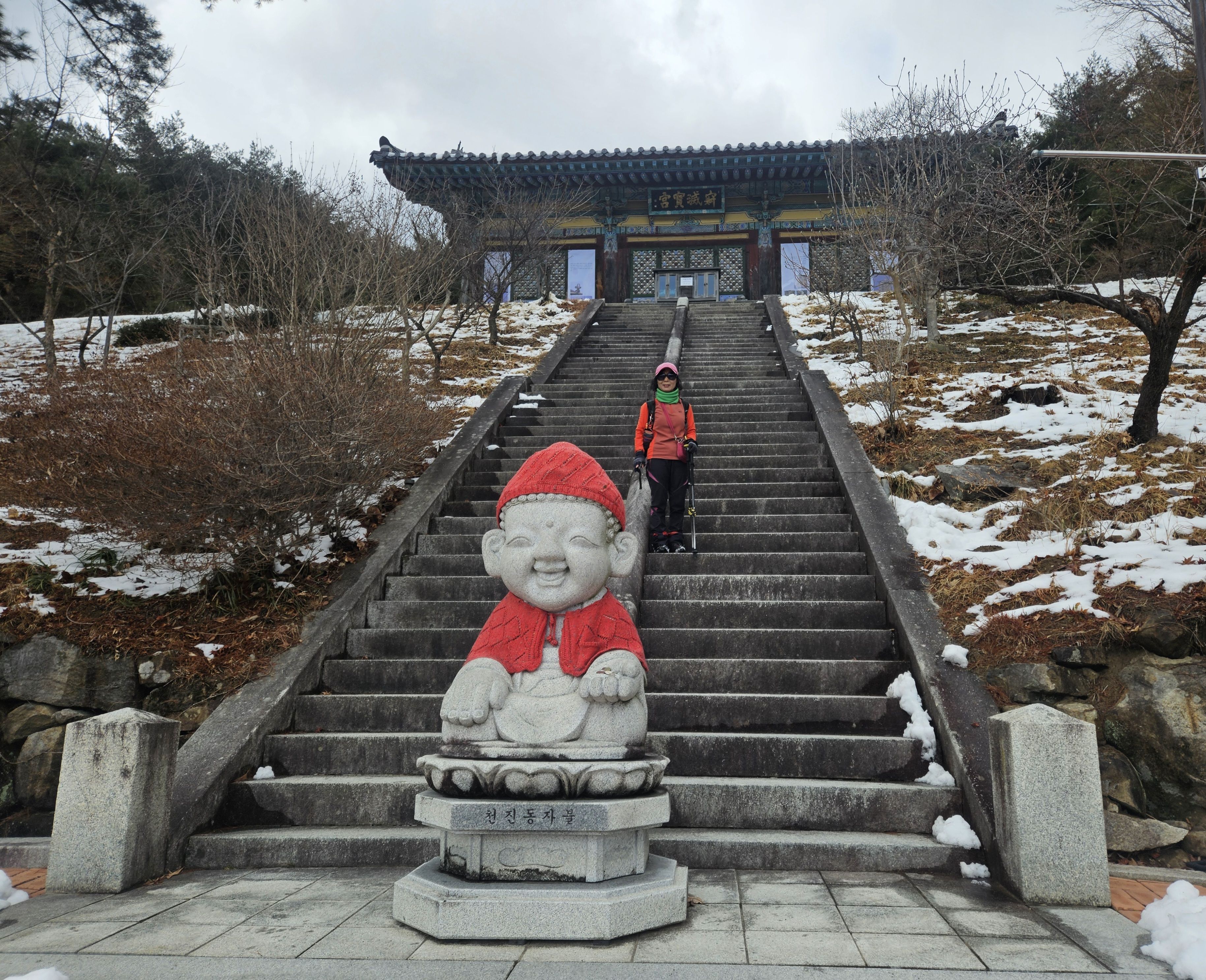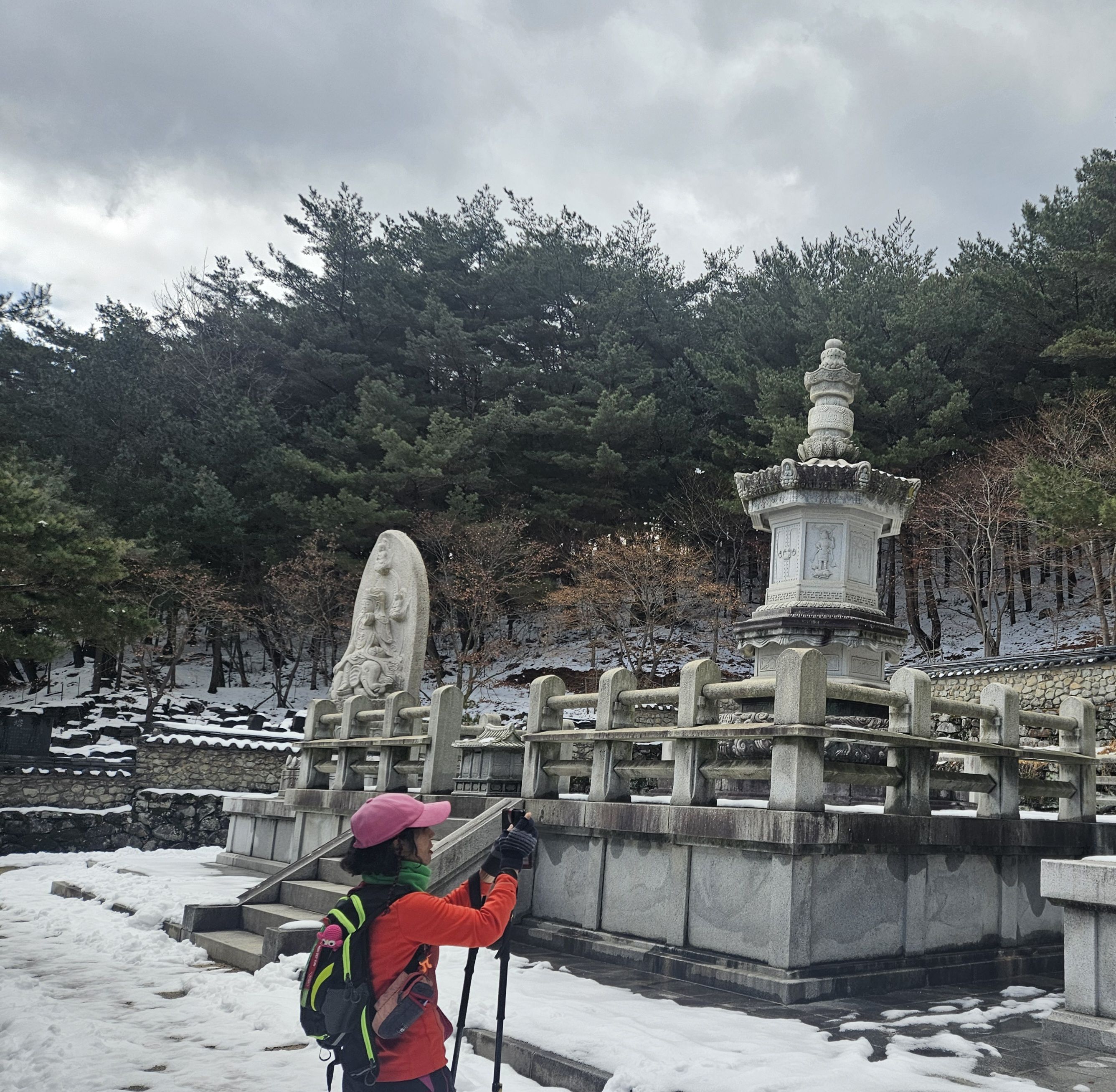 기온이 많이 올라 포근했던 날씨로 등반시는 등에 땀 흠뻑 나더라구요..첨 출발시는 눈이 보이지 않아 별 걱정없이 편하게 걸었는데 어머나 *구미 산악레포츠 공원* 이후 부텀 차츰 눈이 많아지면서 등로가 미끄러운 최대로 천천히 올라갔는데... 막바지엔 아이젠 착용까지 하게 되었습니다. 냉산 이후는 직진 등선이 정코스 하산이였지만 일부는 냉산에서 빽~~~빠른길로 (도리사) 로 하산..빨라진 시간 만큼 도리사 에서 여유롭게 돌아 볼 수 있어 좋았습니다. 천천히 주차장으로...