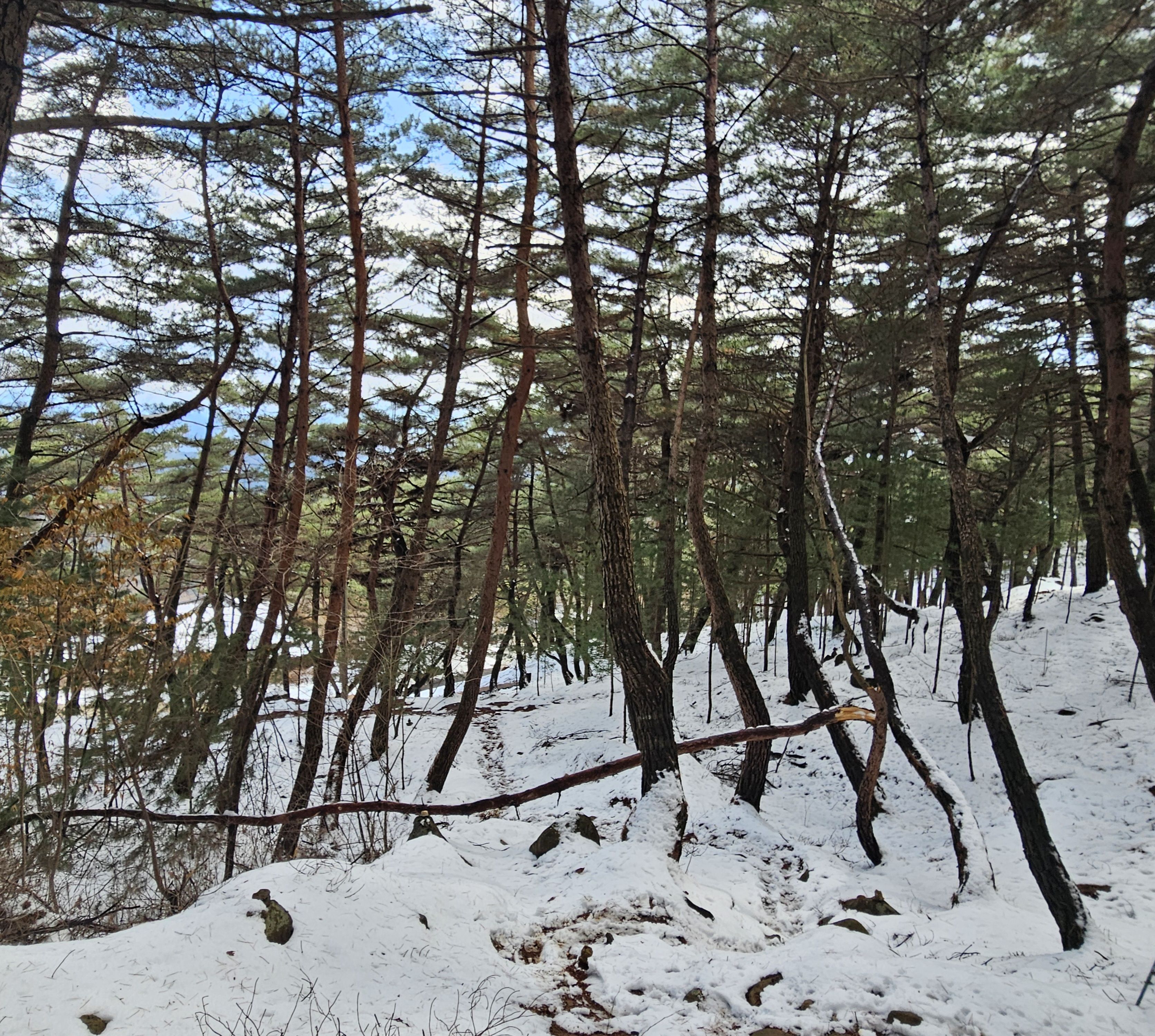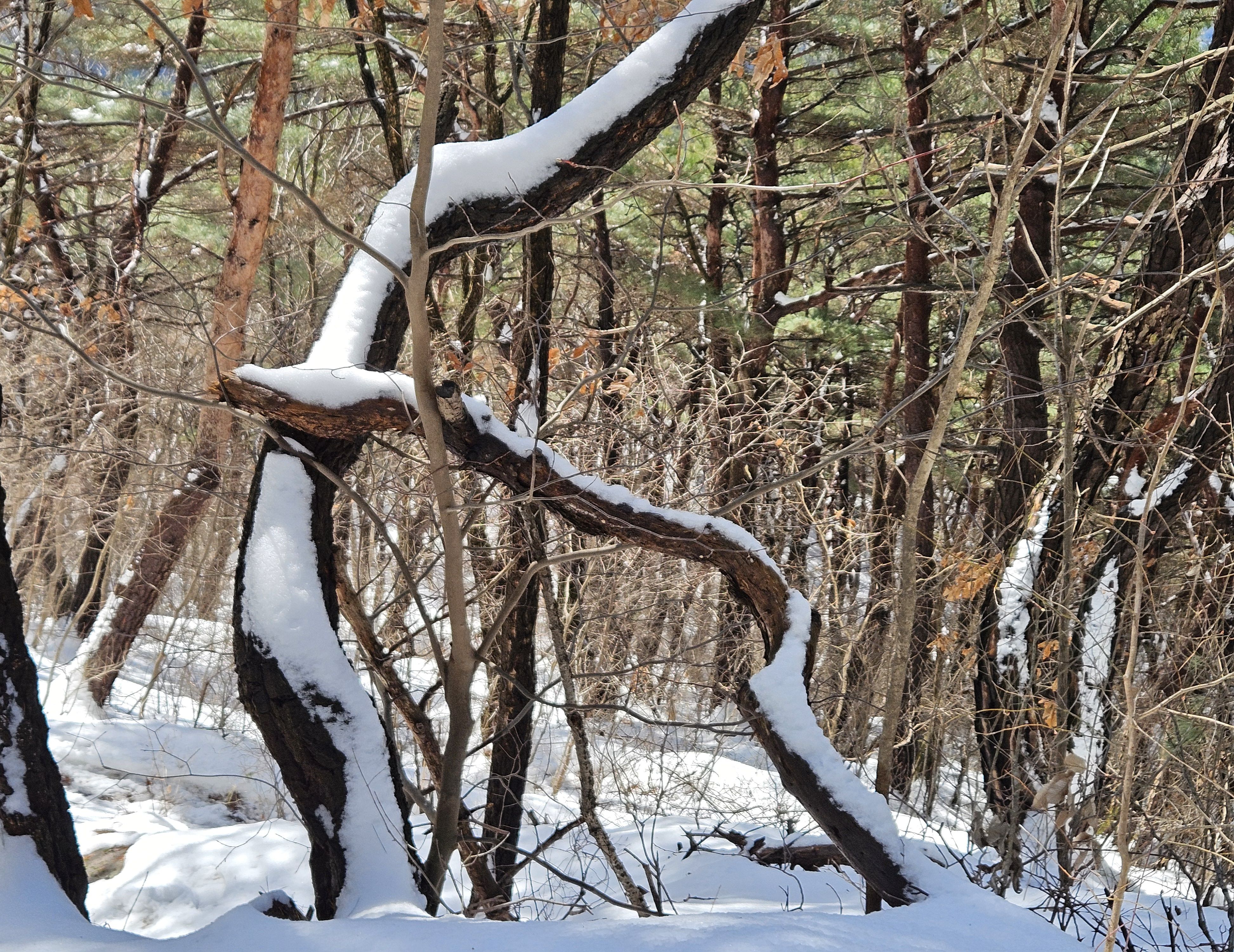 이틀전 내렸던 습한 눈덩이에 부러진 소나무