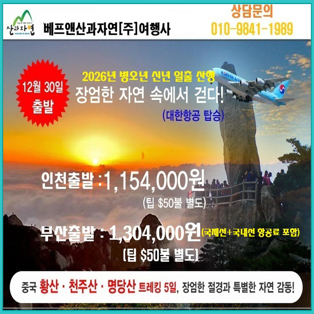 2026년 병오년 신년 중국 일출 트래킹에 관심 있는 분은 연락 주세요