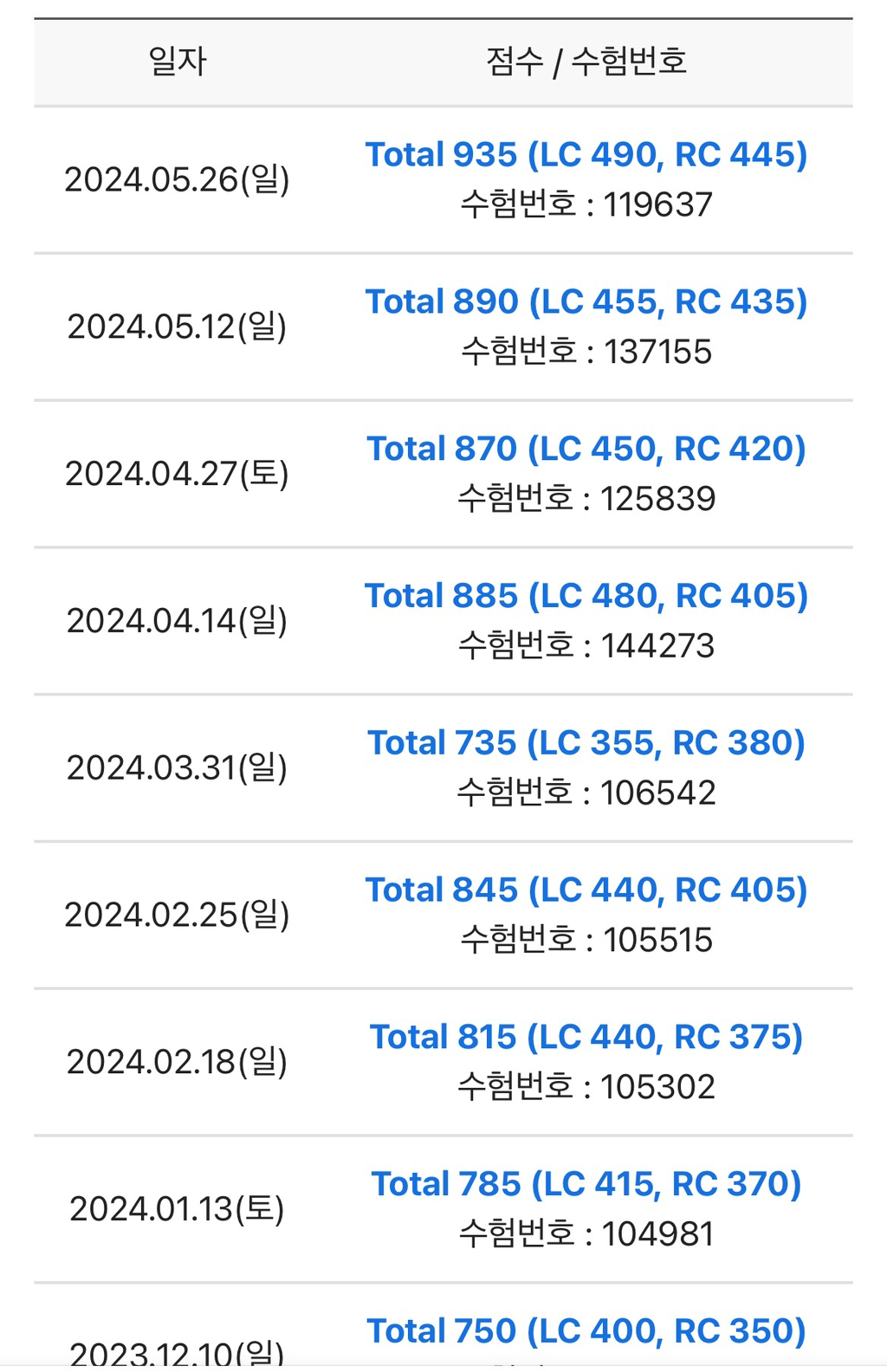 공부하면서 처음에는 공부한만큼 성적이 바로 안나오는거 같아서 내 공부방법이 잘못된건가, 나는 토익을 못하는 사람인가 스스로를 의심할때가 정말 많았는데 토익은 바로 나타나지 않더라도 공부를 하면 차곡차곡 쌓여서 나중에 성적에 반영이 되는것 같았어요. 그러니까 스스로를 의심하지말고 꼭! 밀어붙이세요!! 선생님 말씀 항상 새겨들으면서 앉아서 공부하는 시간 확보하면 성적은 무조건 오를 수 있습니다 ㅎㅎ
