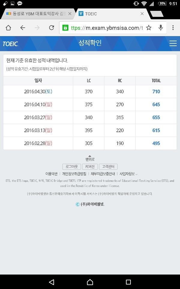 휴학기간 중 첫 스타트를 토익으로 시작하려고 하던 저는, 친구의 추천으로 동성로 YBM 김철홍 선생님의