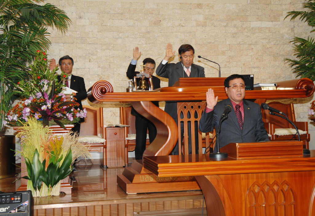 기도:배영국장로(부회장) 표어제창: 박영수징로(부서기)