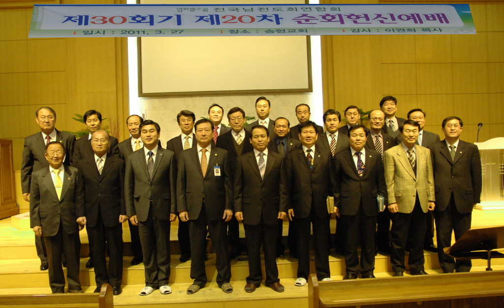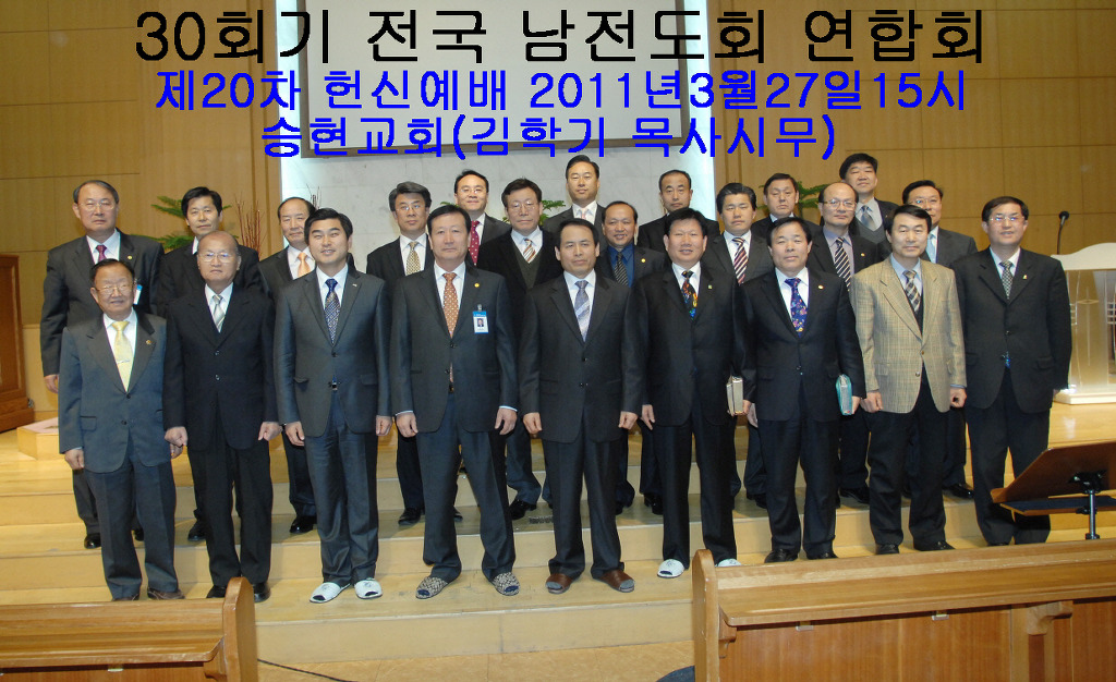 30회기 전국남전도회연합회 20차 순회헌신예배가 2011년3월27일15시 부천승현교회(김학기목사)에서 염채화 회장의 사회로개최되다