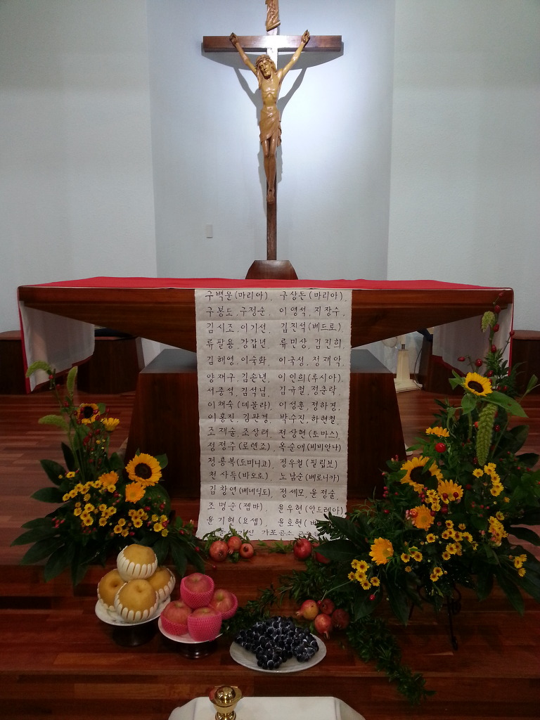 남은 식구들 모두 제단에 올라가서 성찬례를 드리는 감동의 순간을 신부님께서 허락하였어요. 부럽죠?