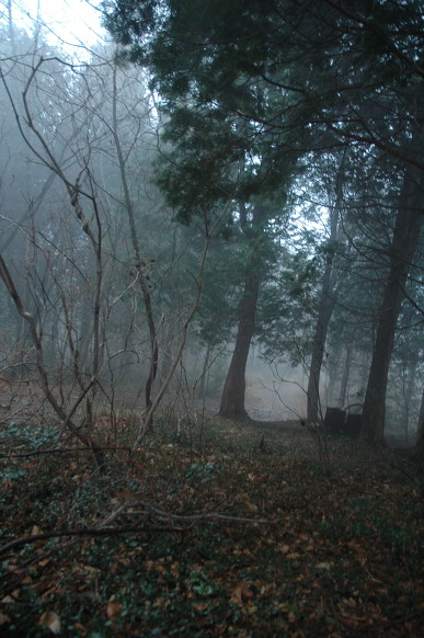 운무로 뒤덮인 편백나무 숲