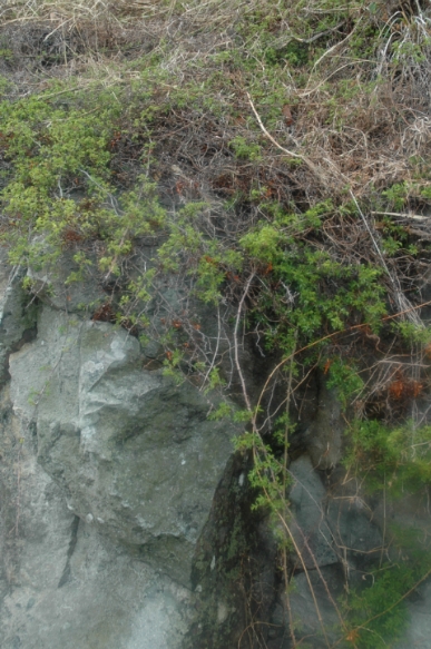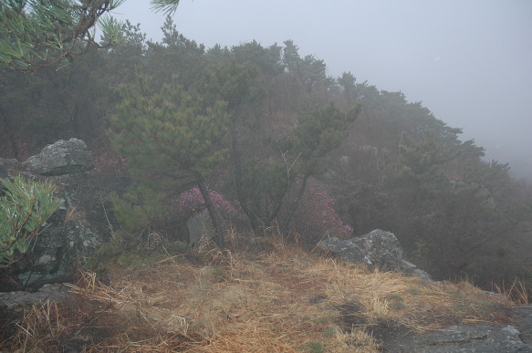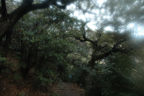 욕지도의 편백나무 숲에 가는비가 내리다.