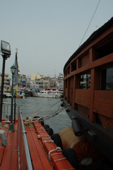 한국의 대표적인 미항, 통영항, 거북선 모형안에서