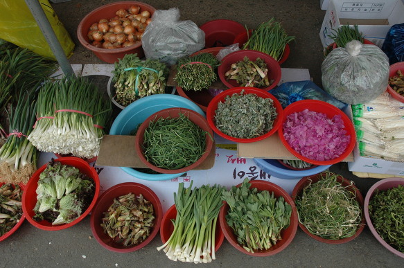 통영 서호시장에서 만난 온갖 나물들 틈에서