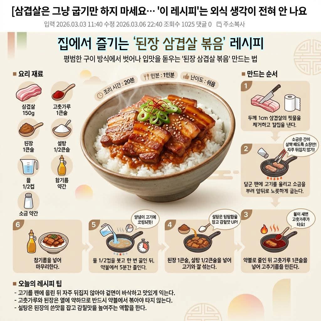 된장 삼겹살 볶음 작성자꼬보|작성시간26.04.02|조회수0 목록 댓글 0 글자크기 작게가 글자크기 크게가 다음검색 현재 게시글 추가 기능 열기 북마크 공유하기 신고 센터로 신고 댓글 댓글 0 댓글쓰기 답글쓰기 댓글 리스트
